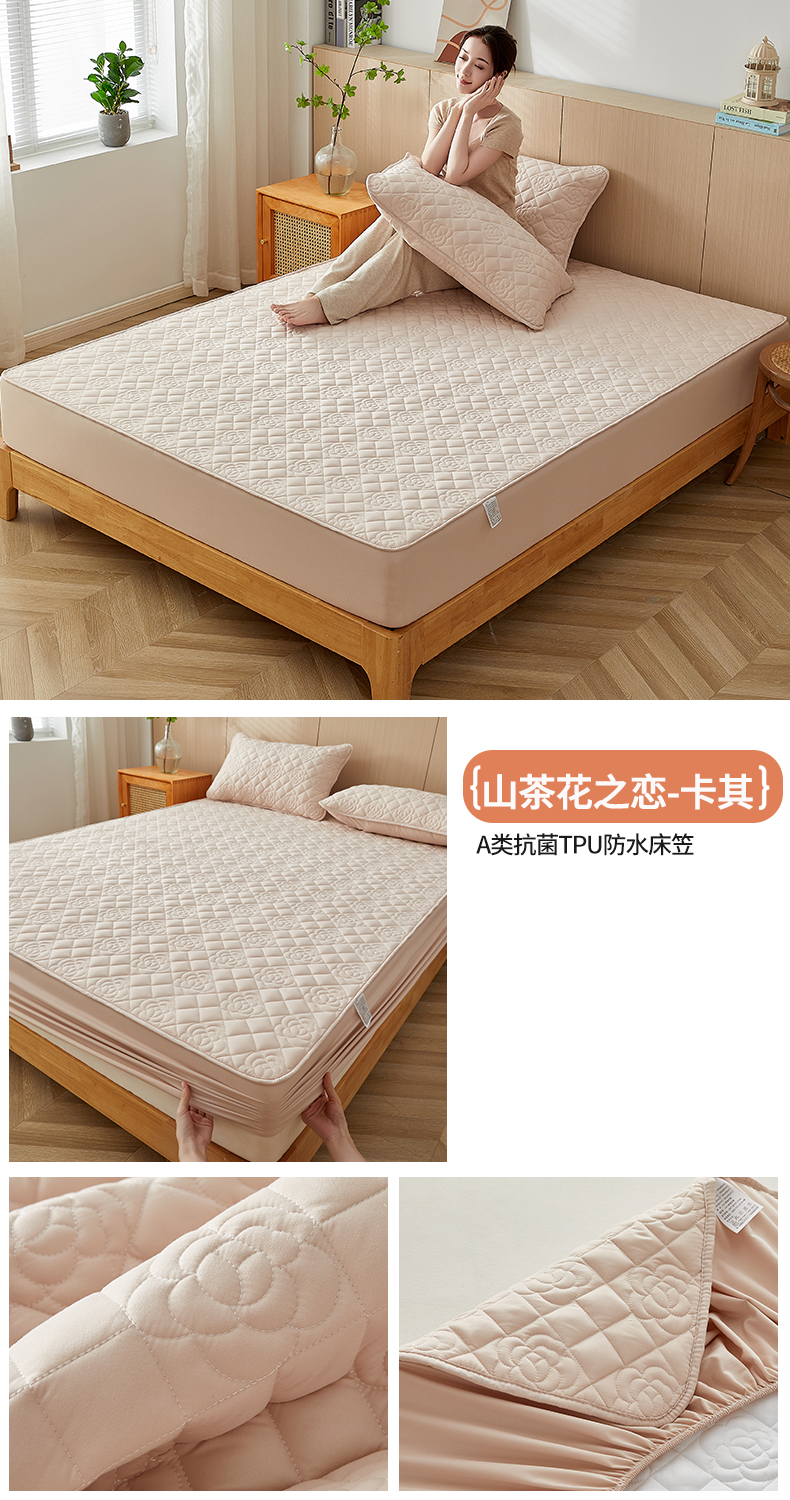 (总)卓越家纺 2025新款山茶花款防水夹棉床笠,山茶花-卡其,山茶花-深灰,山茶花-浅灰,山茶花-水绿,山茶花-米黄,山茶花-奶白