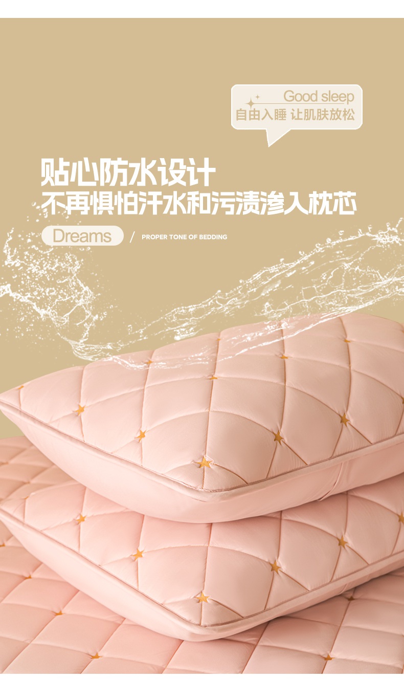 芬晴家纺 2025新款防水枕套-繁星-爱心-简爱-空间 空间-豆沙粉