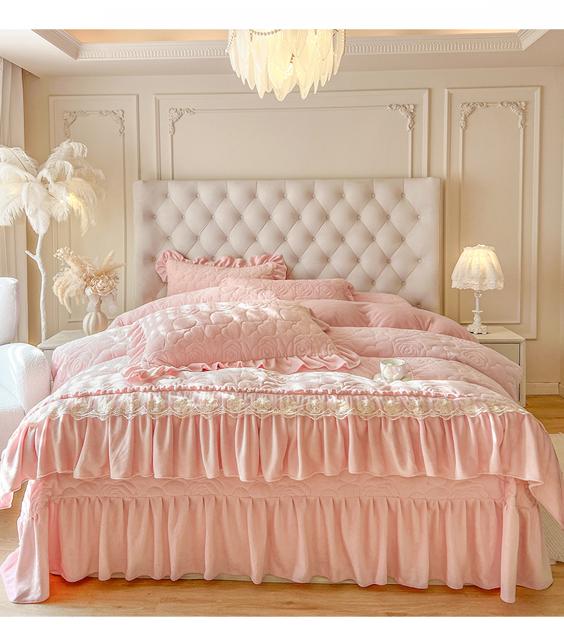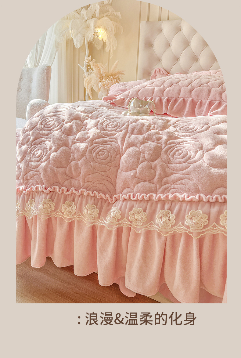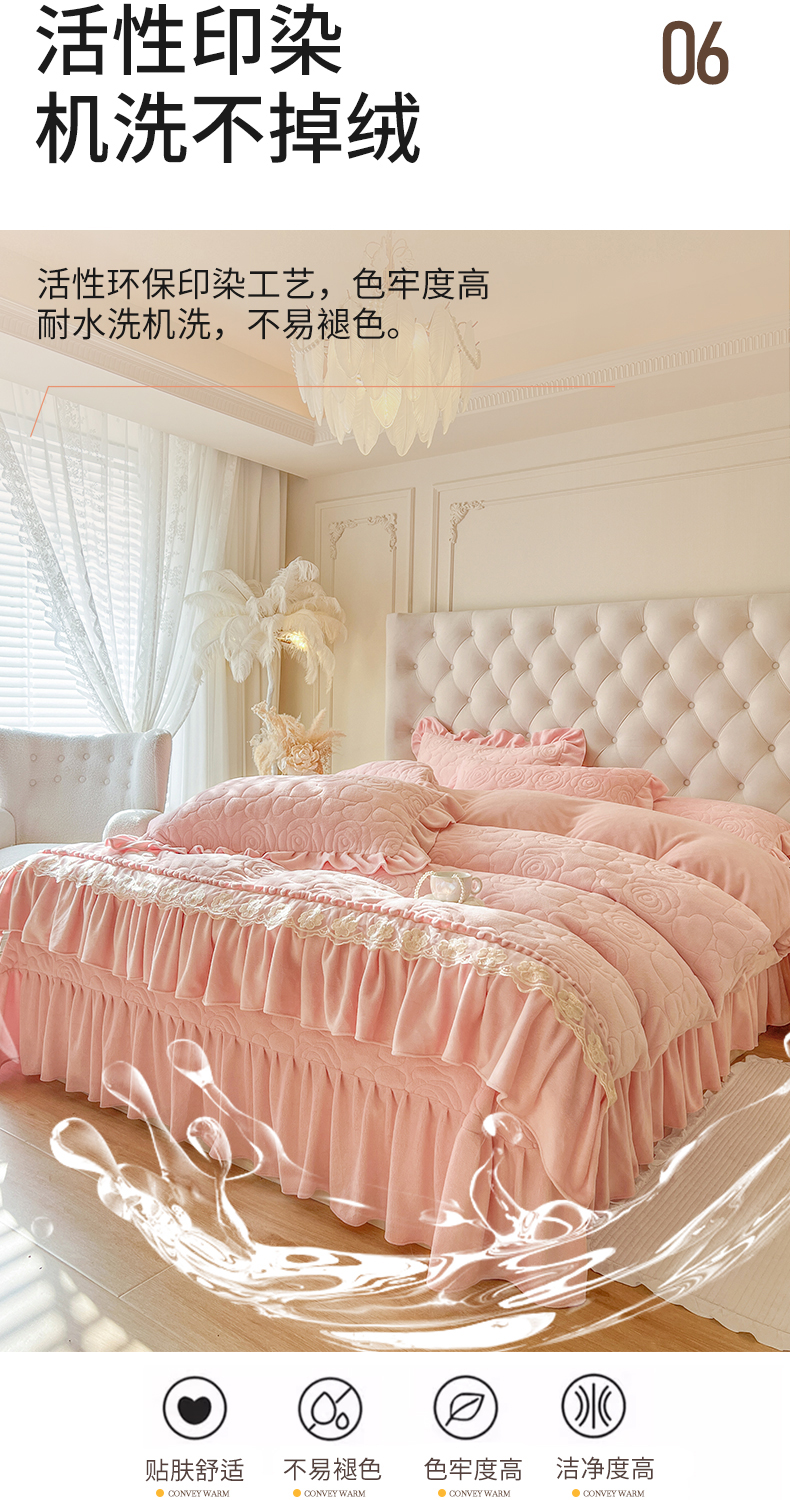 (总)网红馆(ck家纺) 2025新款亲肤舒适牛奶绒蕾丝边床裙四件套-秘密花园,秘密花园-粉色,秘密花园-卡其,秘密花园-米色,秘密花园-紫色