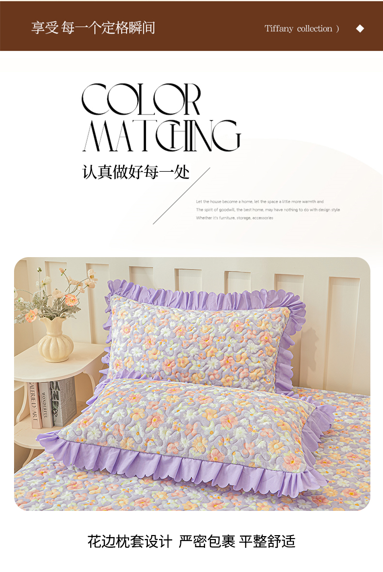 当前位置: 91家纺网 > 商品网购 > 床品套件 > 四件套 > 牛奶绒四件套 > 艾裙海 2025新款蕾丝边牛奶绒床盖四件套 花漾-紫