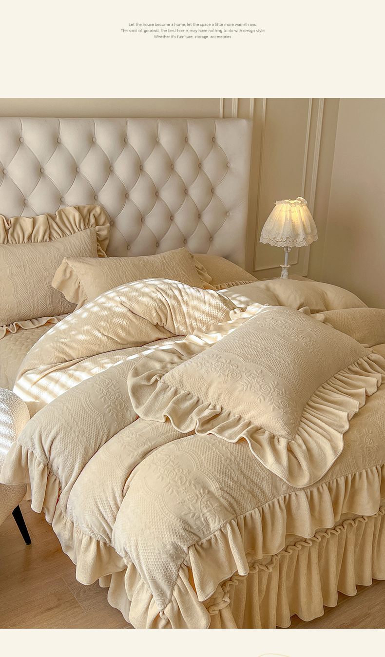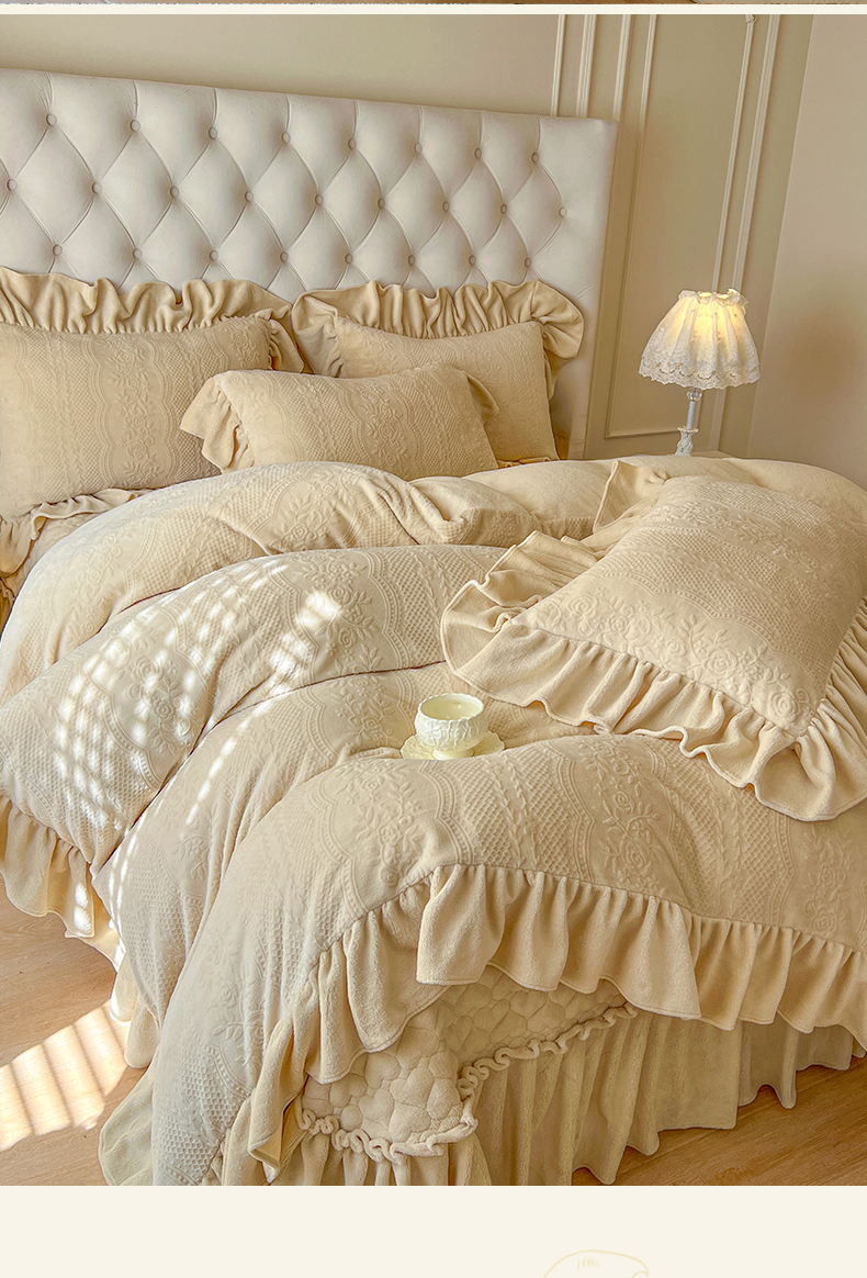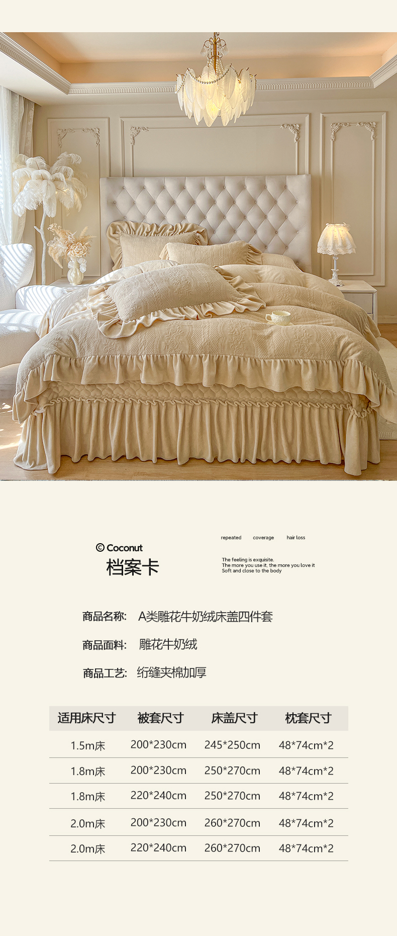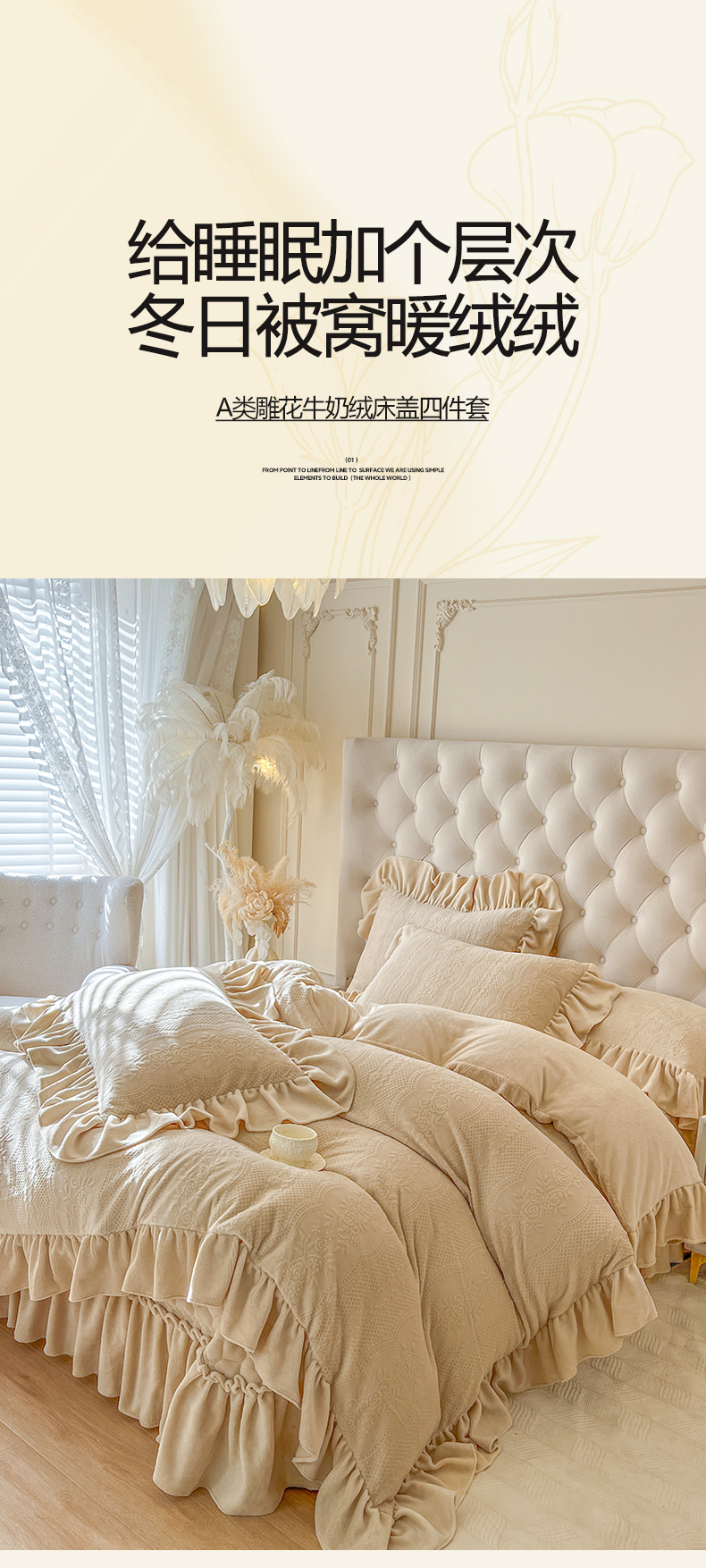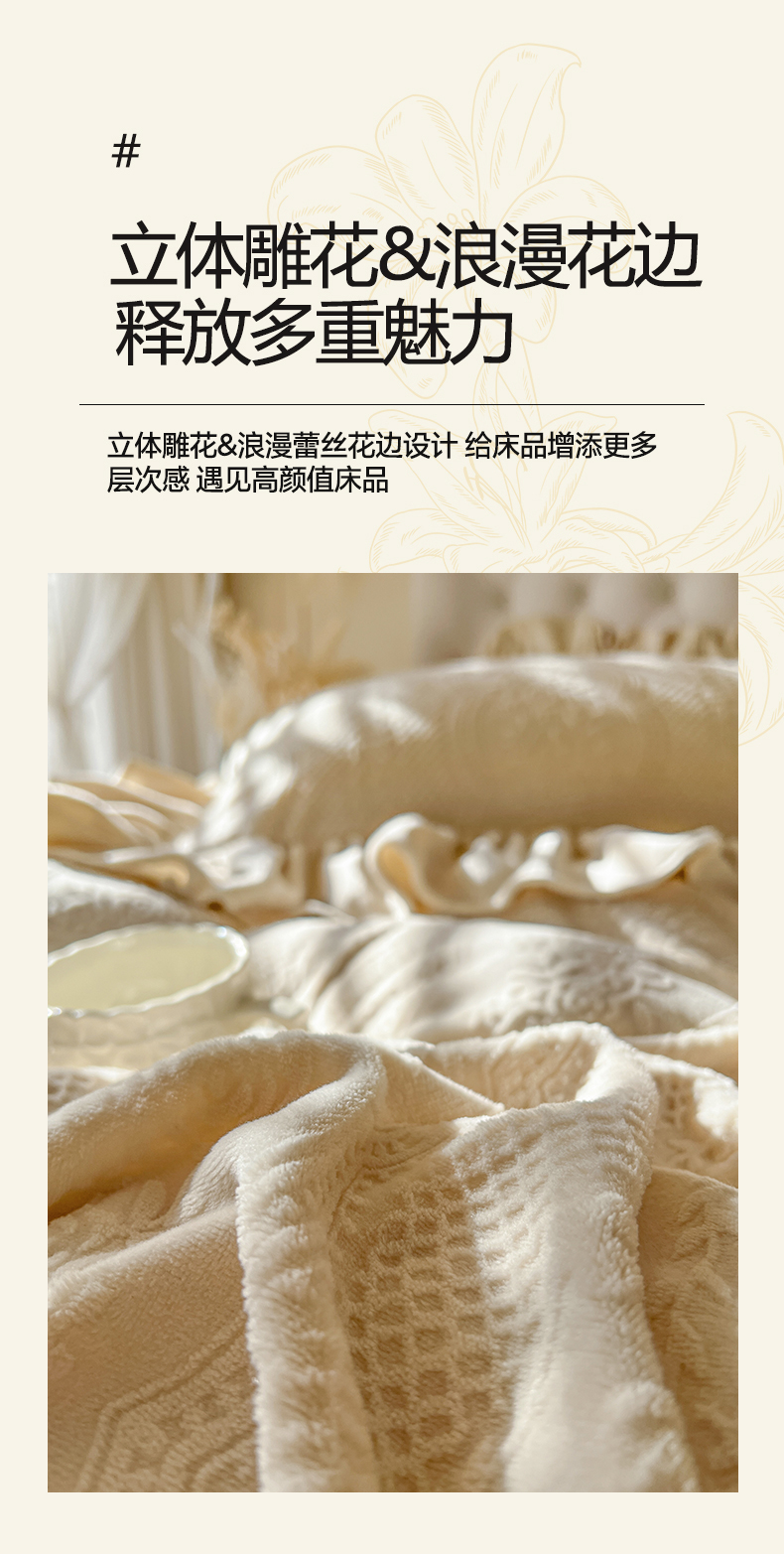 当前位置: 91家纺网 > 商品网购 > 床品套件 > 四件套 > 牛奶绒四件套 > (总)好儿喜家纺 2026新款雕花牛奶绒床盖四件套-秘享 (控价最低249元起)
