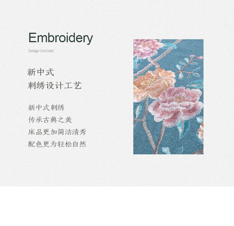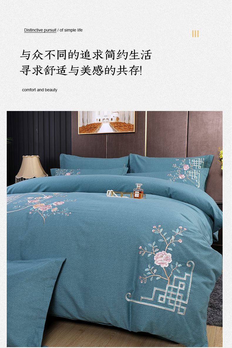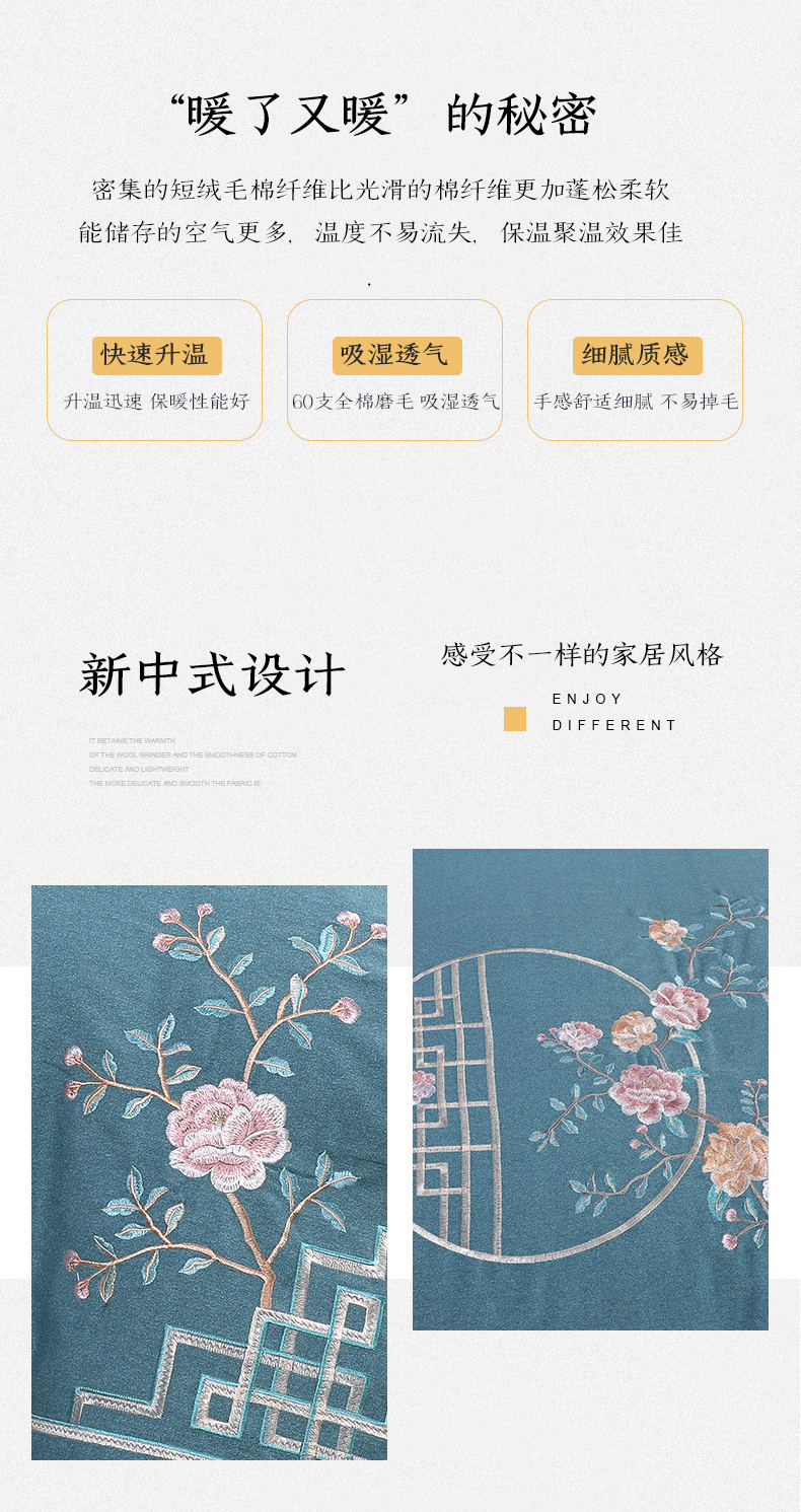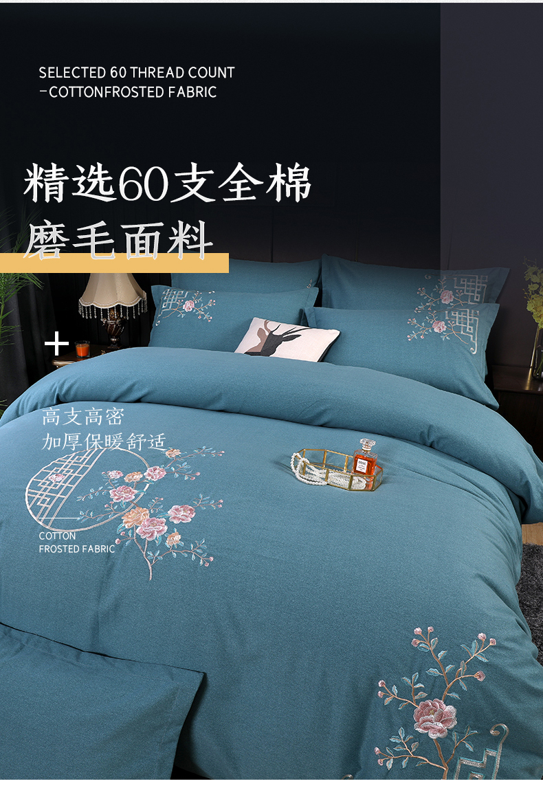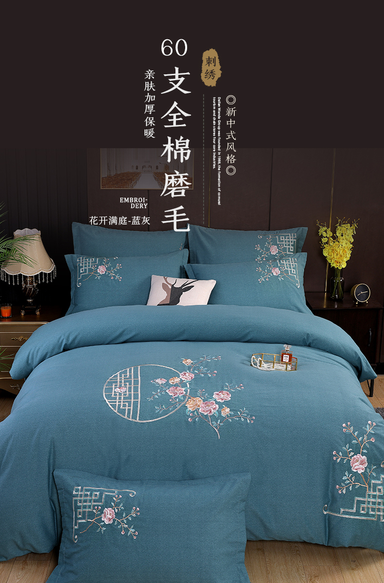 商品名称:浩情国际婚庆供货中心 2026新款秋冬60S高端全棉刺绣磨毛系列 花开满庭-蓝灰