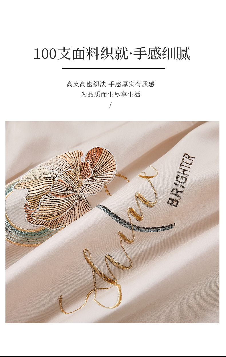 商品名称:浩情国际婚庆供货中心 2026新品- 秋冬高支密全棉长绒棉磨毛高端刺绣系列四件套 轻曼-米驼