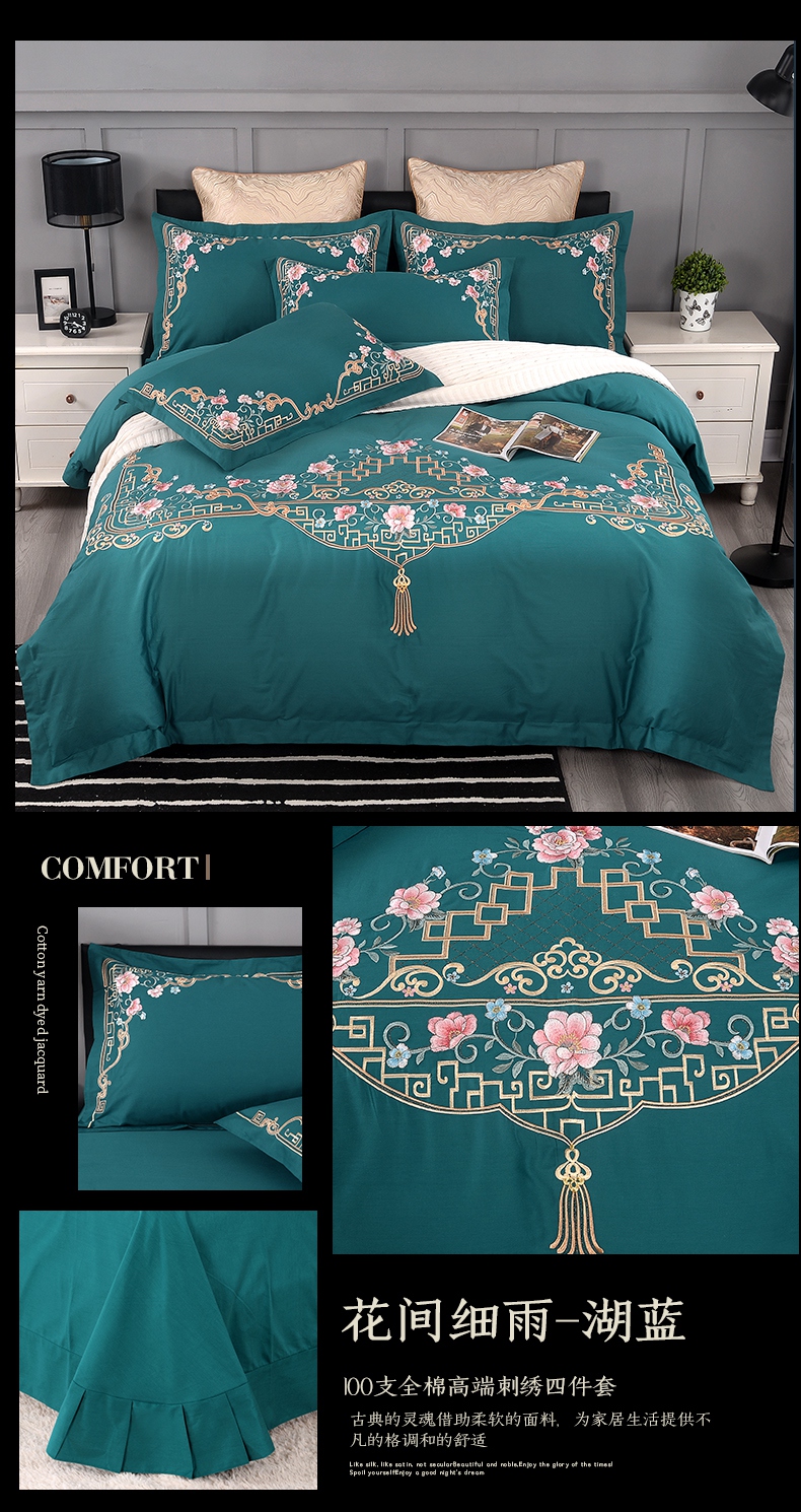 (总)2026秋冬新品全棉磨毛刺绣120支四件套系列-玫瑰庄园,玫瑰庄园-碧水兰,玫瑰庄园-豆沙,玫瑰庄园-桂花玉,玫瑰庄园-米驼,玫瑰庄园-墨绿,玫瑰庄园-优雅灰