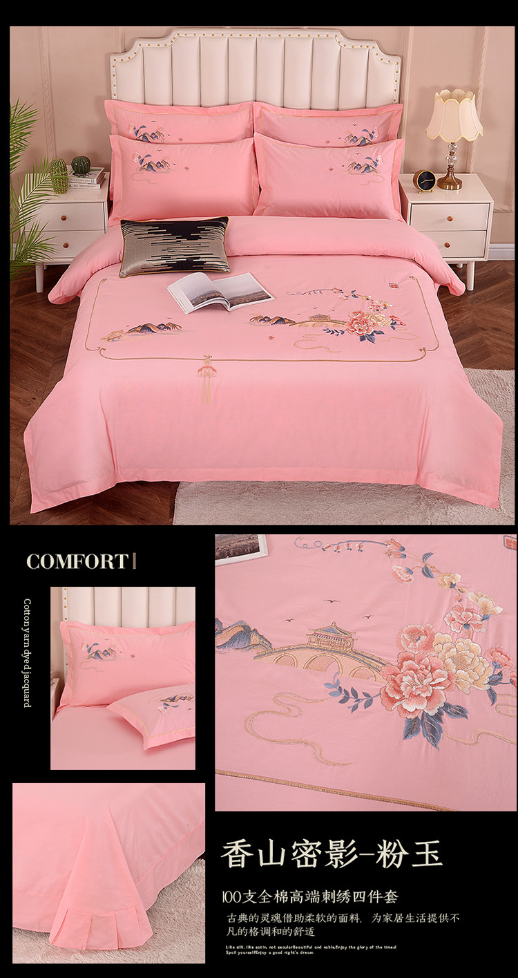 (总)浩情国际2026新款100S长绒棉高端刺绣四件套,花之曼-大红,花之曼-豆沙,花之曼-粉玉,花之曼-灰豆绿,花之曼-孔雀绿,花之曼-兰灰,花之曼-驼色,花之曼-紫豆沙
