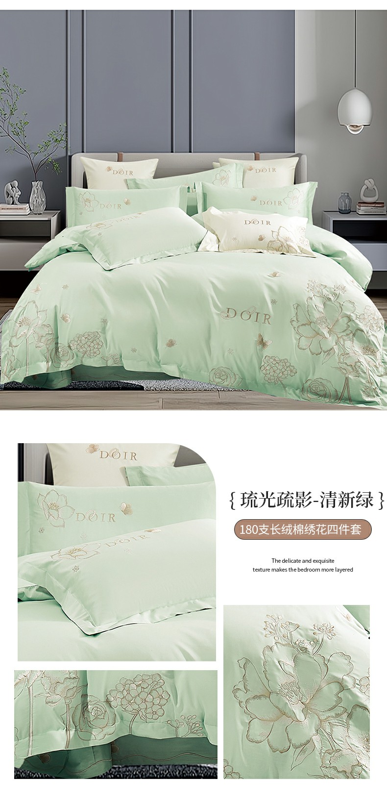 (总)浩情国际 2026四季款斜纹木棉绣花克拉恋人系列四件套,克拉恋人-时尚灰,克拉恋人-宾利蓝,克拉恋人-清水绿,克拉恋人-雅黛粉,克拉恋人-中国红