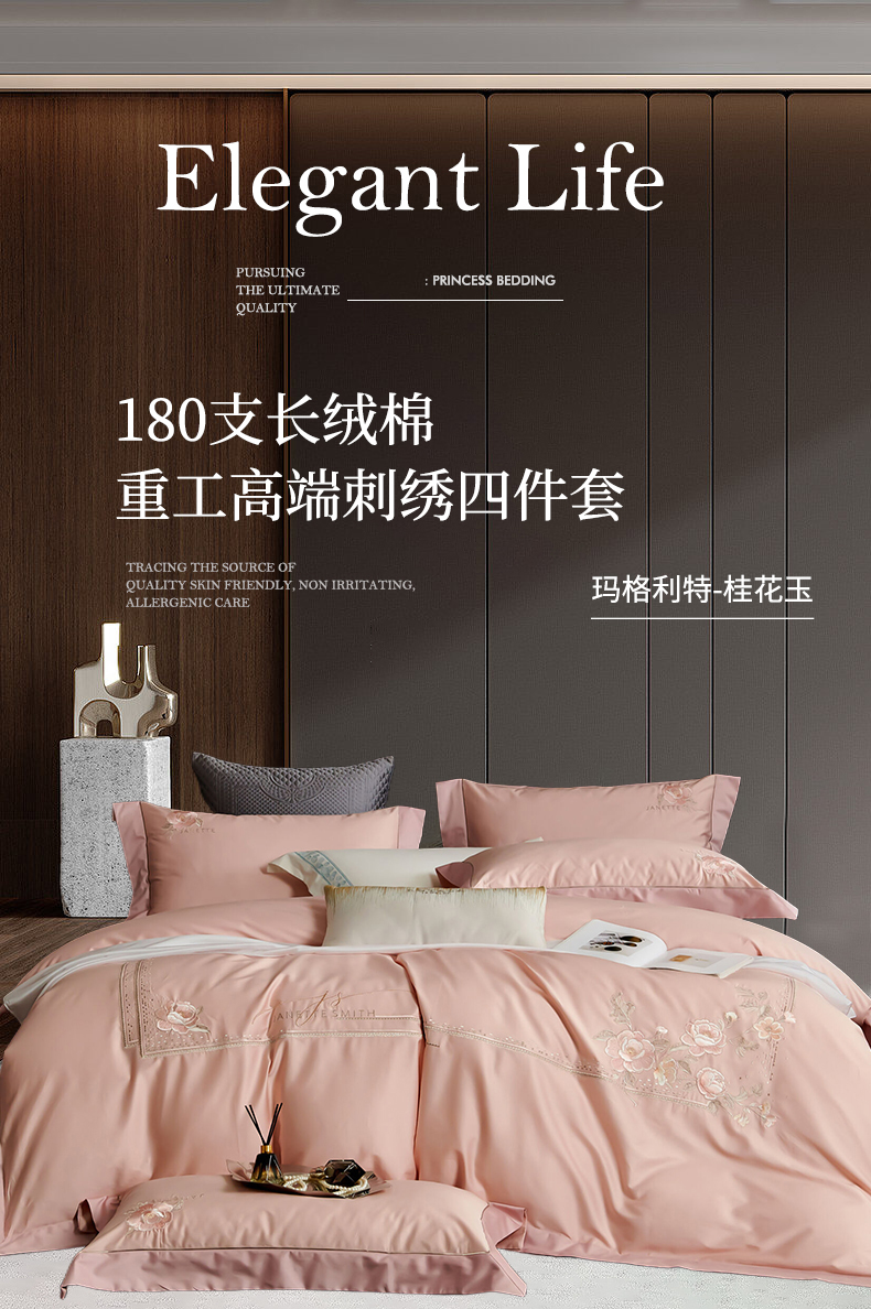 浩情国际婚庆供货中心 2026新款180支长绒棉重工刺绣四件套 玛格利特-桂花玉