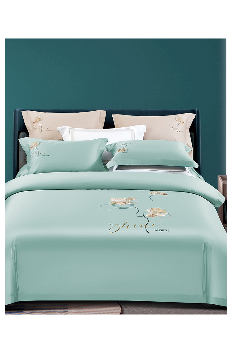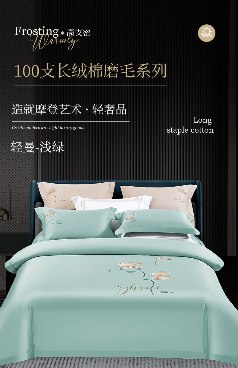 浩情国际婚庆供货中心 2026新品-100支全棉长绒棉磨毛高端刺绣系列四件套 轻曼-浅绿