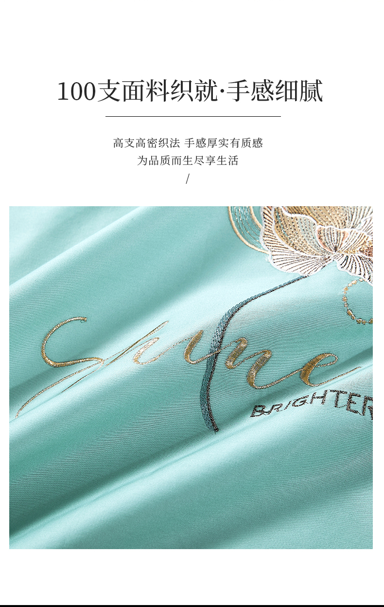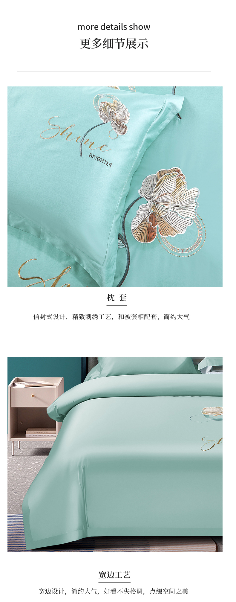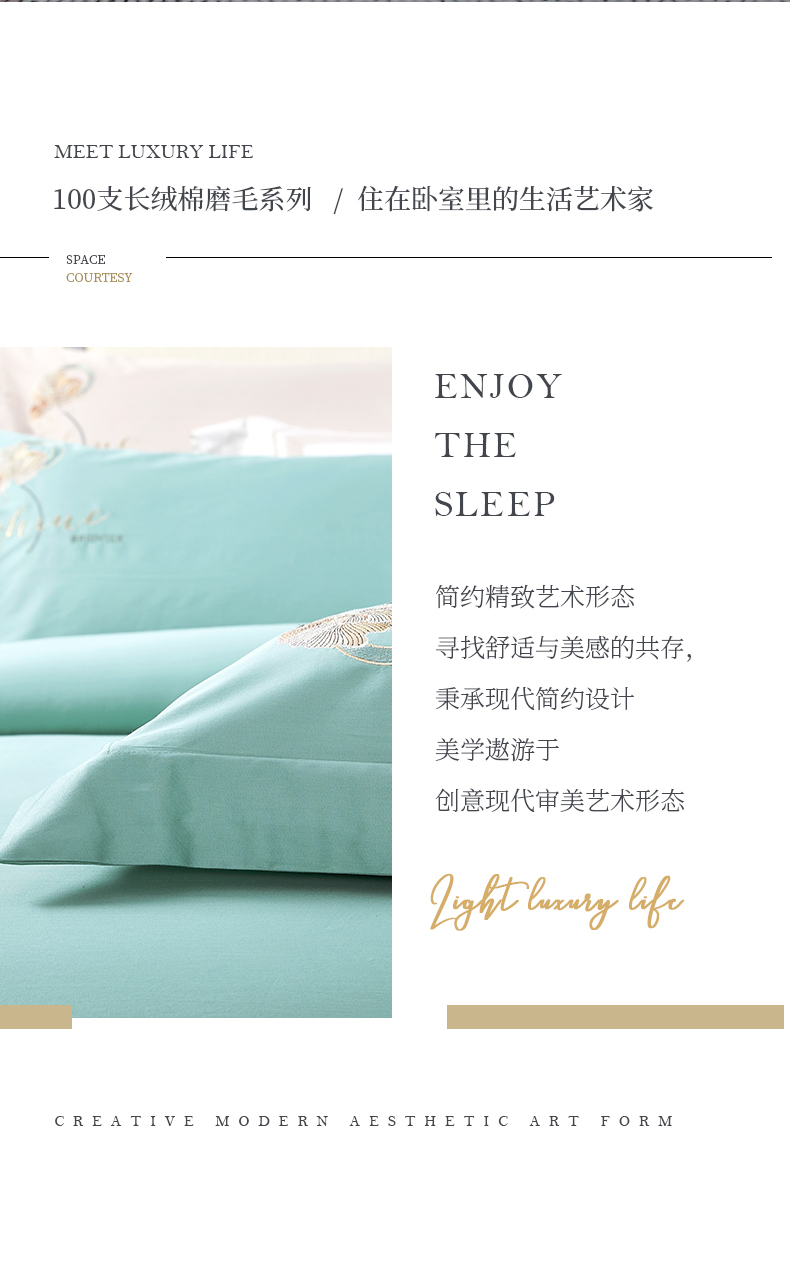 商品名称:浩情国际婚庆供货中心 2026新品-100支全棉长绒棉磨毛高端刺绣系列四件套 轻曼-浅绿