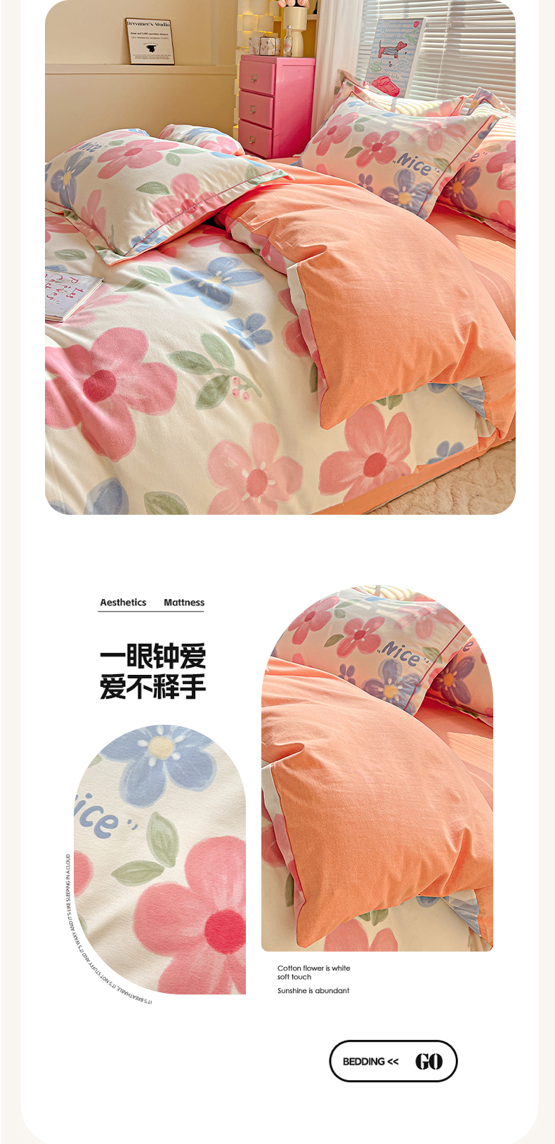 (总)曲之慕 2026新款全棉纯棉加厚喷气磨毛印花四件套