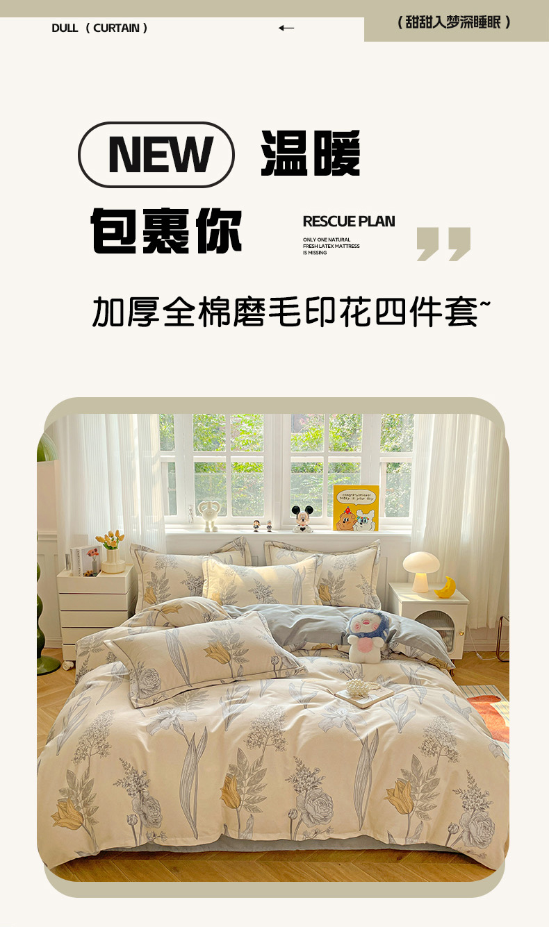 (总)曲之慕 2026新款全棉纯棉加厚喷气磨毛印花四件套,林见兔,波西米亚,花舞悠然,卡尼亚,克莱尔,米莱,米莱-兰,米莱-紫,向阳花开,南瓜屋,爱意浓,吾安心,登威熊,芬迪,花恬,花意,空间,晚秋,幽羽,费洛斯,浅香,汀兰,云梦泽,艾格拉,蓝汐,蓝漾,萝莉,暖漾,绮梦,青枝语,秋韵,柔晖,絮语,紫韵,爱意花间,花蕊粉,四叶草,幽梦玉