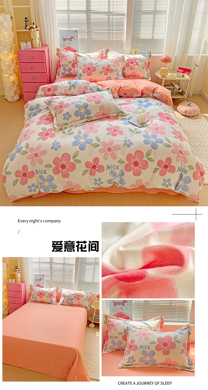 商品名称:曲之慕 2026新款全棉纯棉加厚喷气磨毛印花四件套 花蕊粉