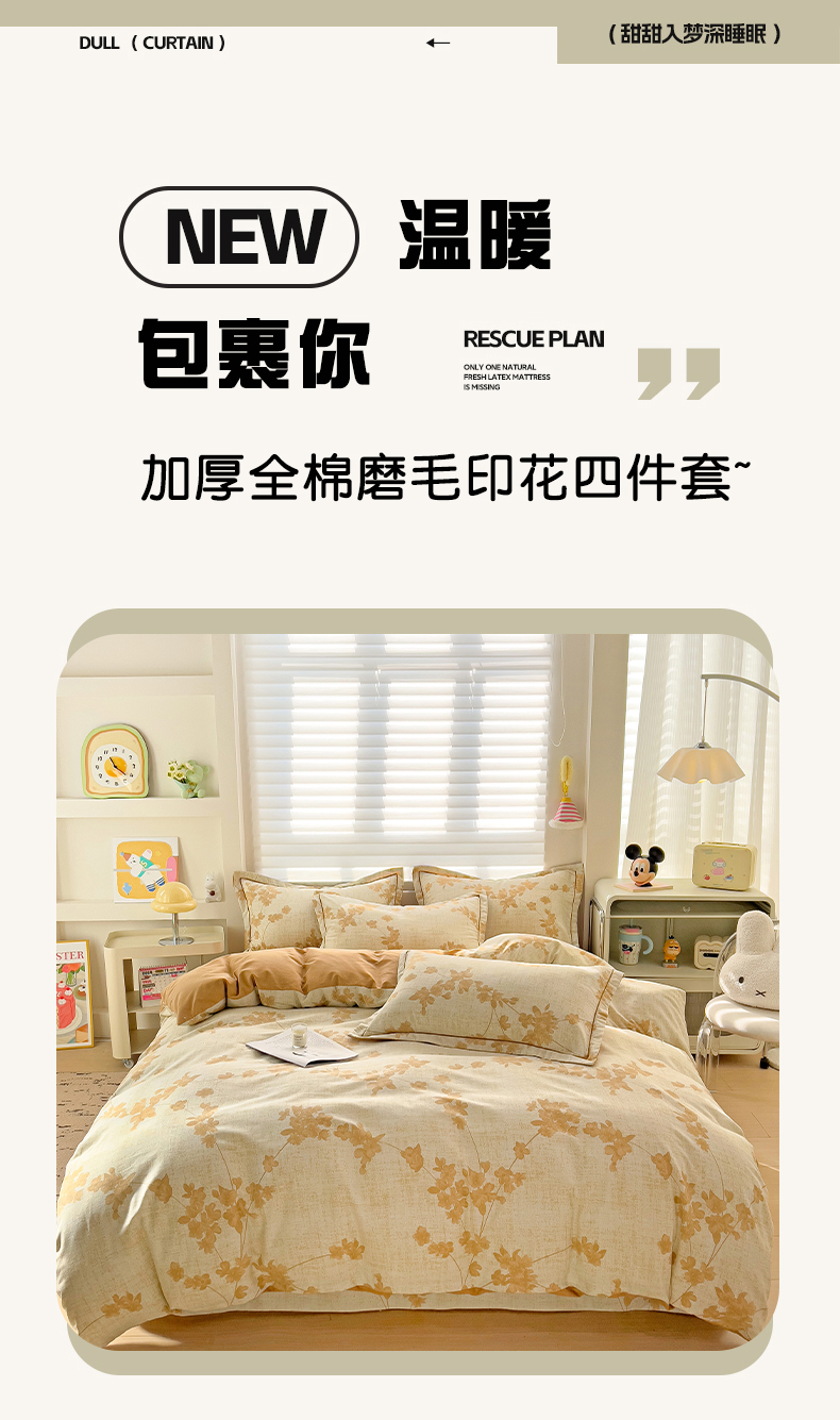 (总)曲之慕 2026新款全棉纯棉加厚喷气磨毛印花四件套,浅花悠悠,林见兔,波西米亚,花舞悠然,卡尼亚,克莱尔,米莱,米莱-兰,米莱-紫,向阳花开,南瓜屋,爱意浓,吾安心,登威熊,芬迪,花恬,花意,空间,晚秋,幽羽,费洛斯,浅香,秋叶,啬园,汀兰,云梦泽,艾格拉,蓝汐,蓝漾,萝莉,暖漾,绮梦,青枝语,秋韵,柔晖,絮语,紫韵,爱意花间,花蕊粉,四叶草,幽梦玉