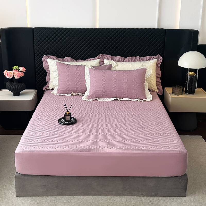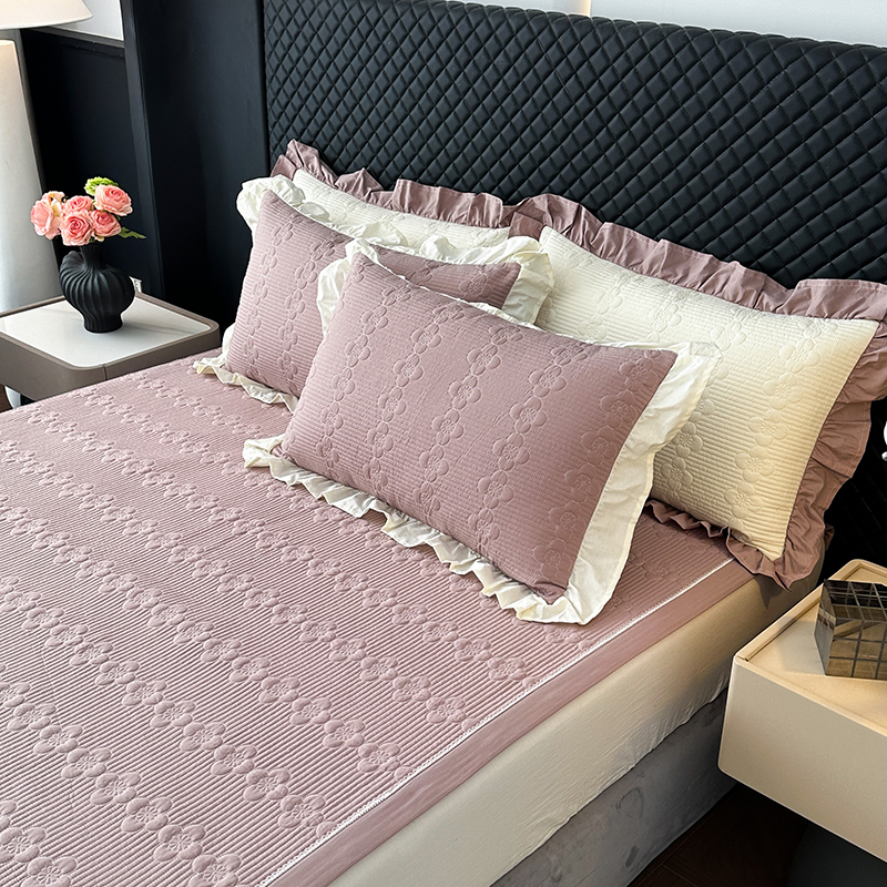 (总)紫碧螺家纺 2025新款牛奶绒绗绣裙式床盖三件套,暖黄,银灰,绿色,粉色,奶白,浅紫