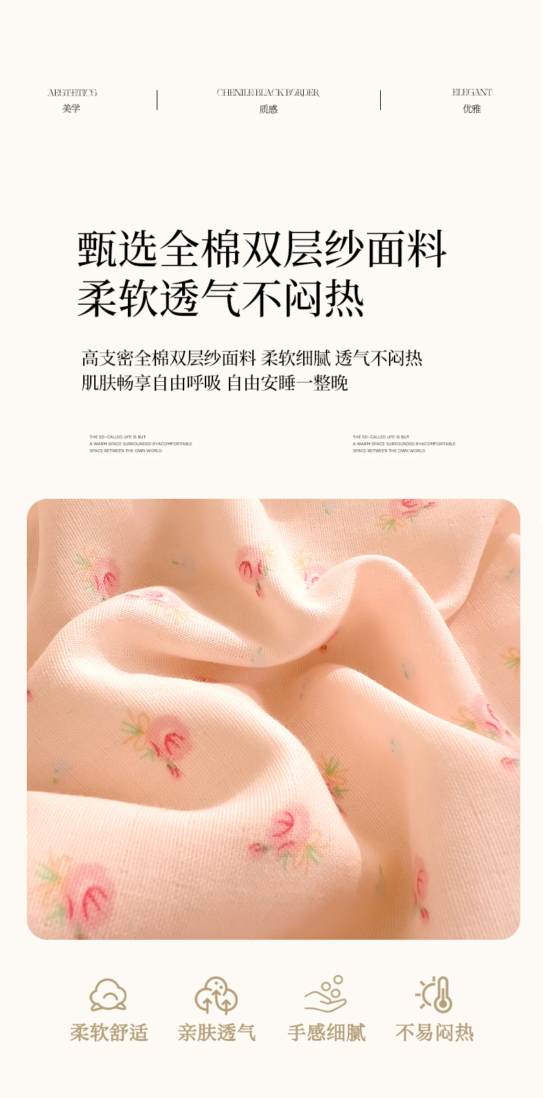 当前位置: 91家纺网 > 商品网购 > 床品套件 > 四件套 > 全棉普通四件套 > DoDo 兜兜 2026新款全棉纯棉柔软双层纱套件系列(可定做尺寸) 安妮