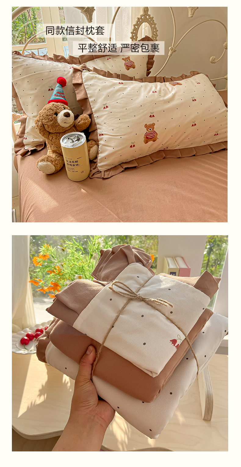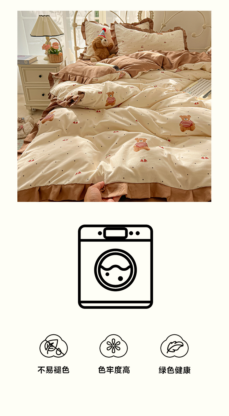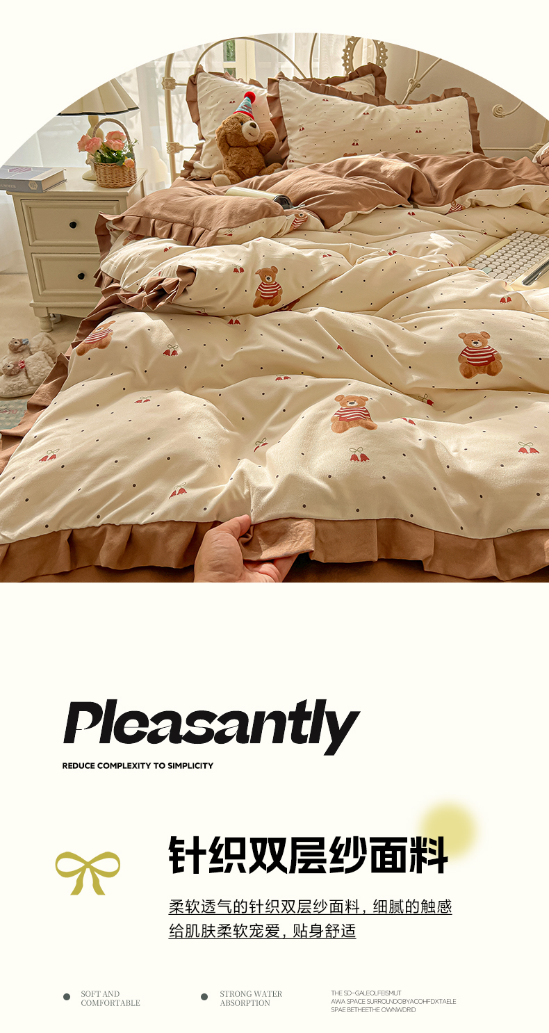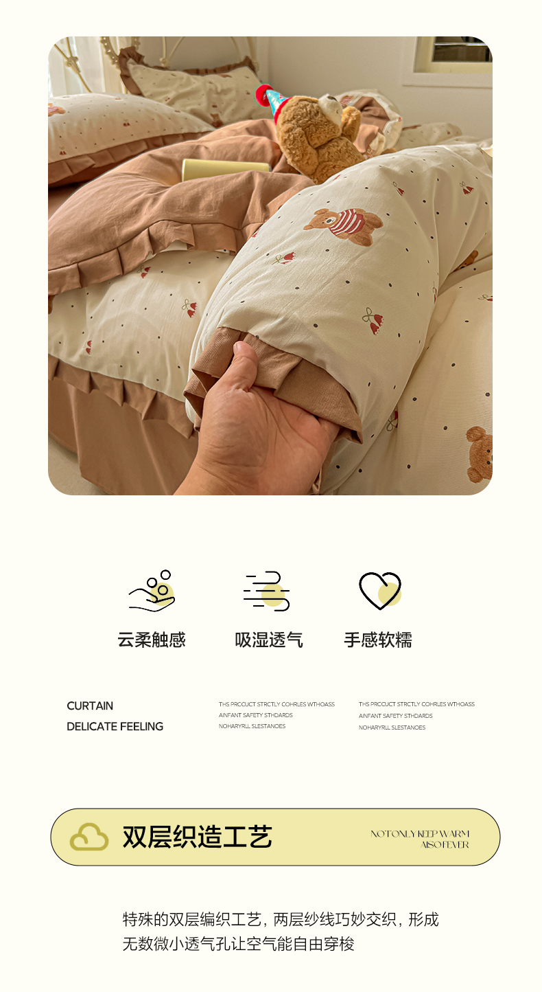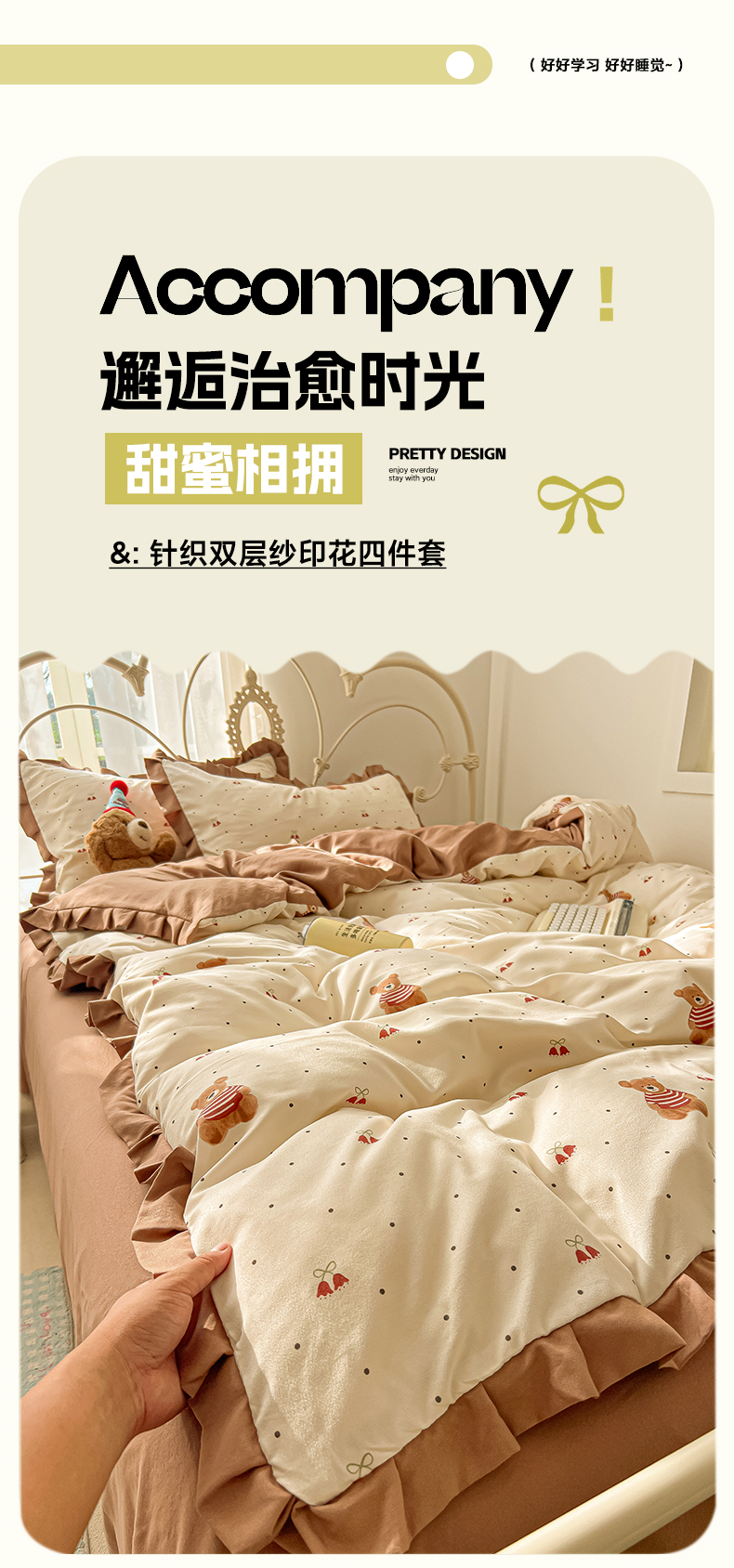 当前位置: 91家纺网 > 商品网购 > 床品套件 > 四件套 > 双层纱四件套 > 韩巢家纺 2026新款花边款针织双层纱四件套 叮当熊
