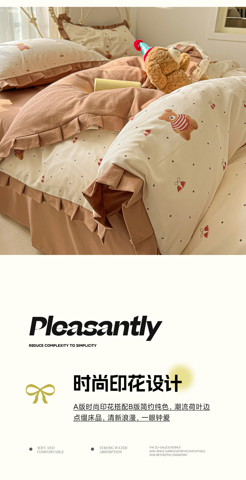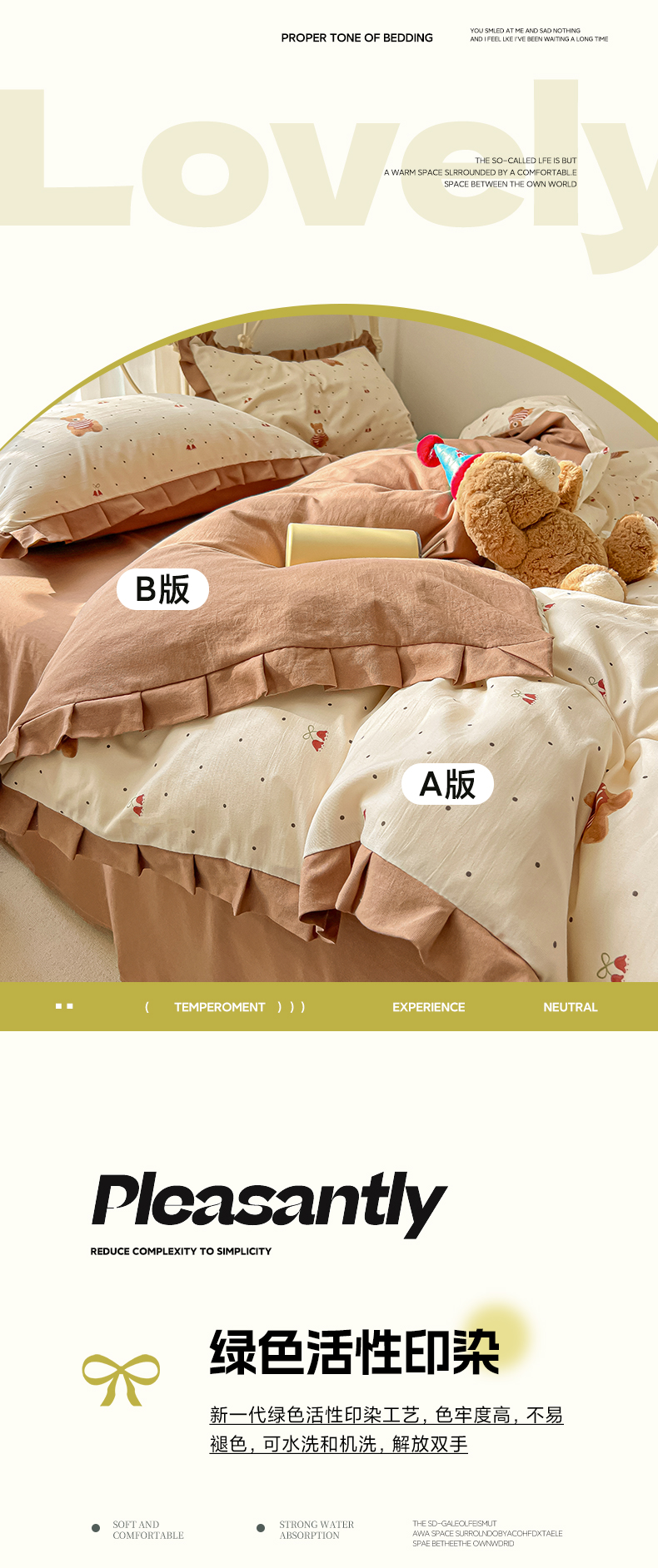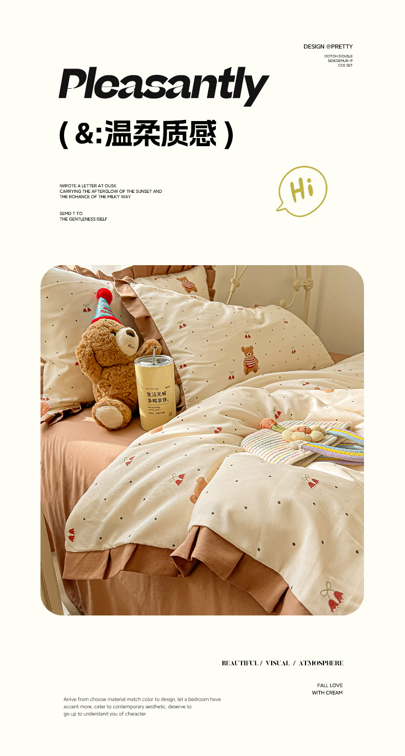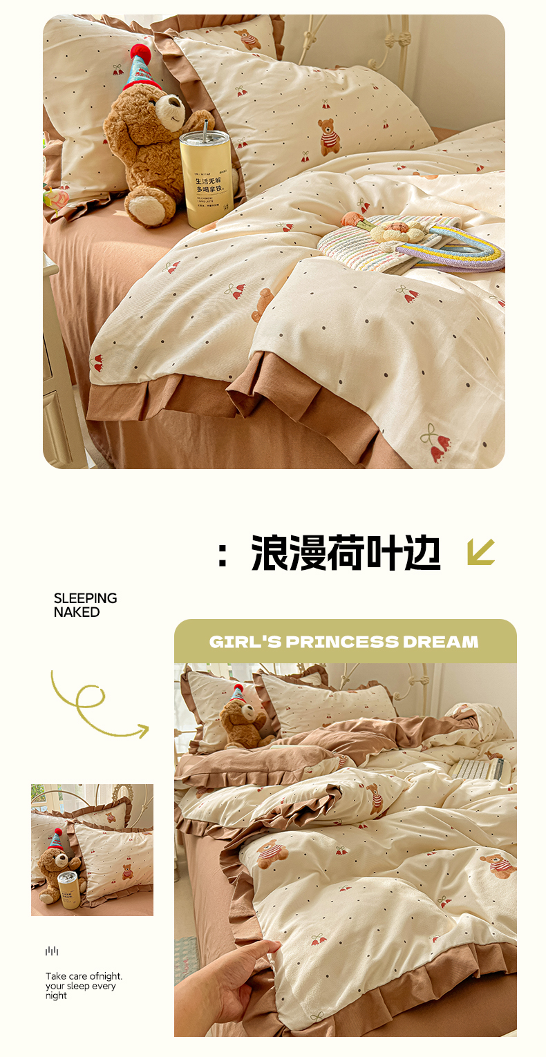 当前位置: 91家纺网 > 商品网购 > 床品套件 > 四件套 > 双层纱四件套 > 韩巢家纺 2026新款花边款针织双层纱四件套 叮当熊