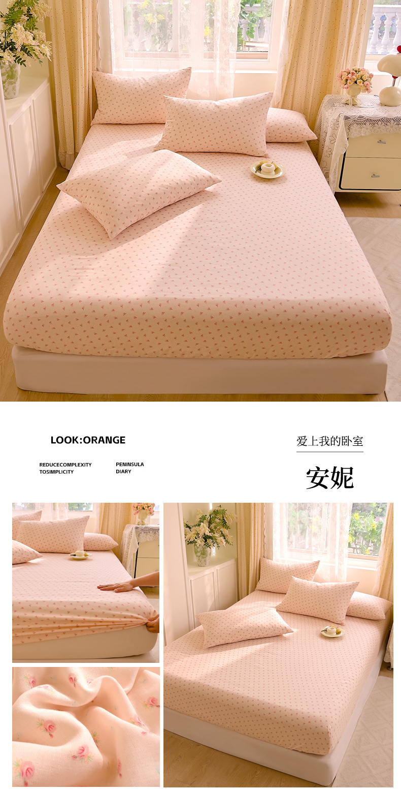 (总)DoDo 兜兜 2026新款全棉纯棉柔软双层纱单品床笠系列(可定做尺寸),含笑-粉,爱洛伊,安妮,格桑花-粉,格桑花-黄,含笑-紫,美娜,木兮,浅茉,乔安娜,软芙,甜梦,香草,伊卡,芷若