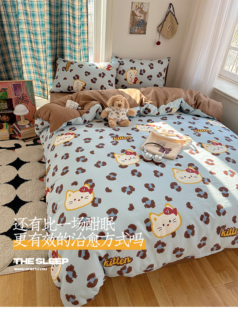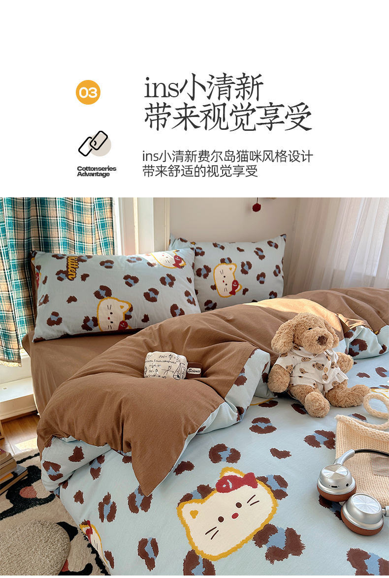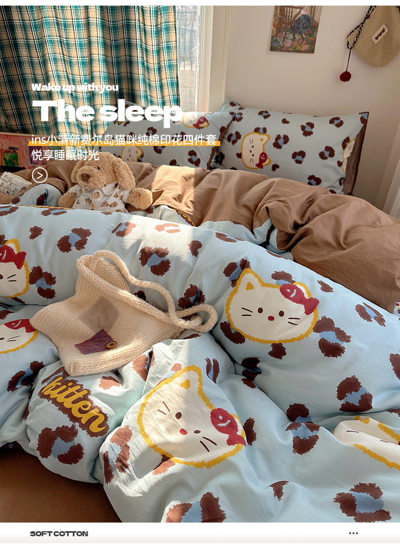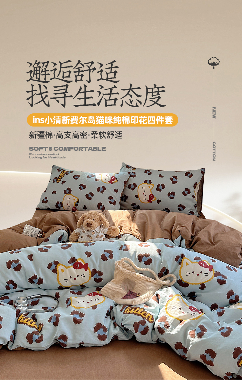 当前位置: 91家纺网 > 商品网购 > 床品套件 > 四件套 > 全棉普通四件套 > 桃子家居 2026新款ins小清新费尔岛猫咪全棉纯棉印花四件套 棉-喵吃鱼蓝