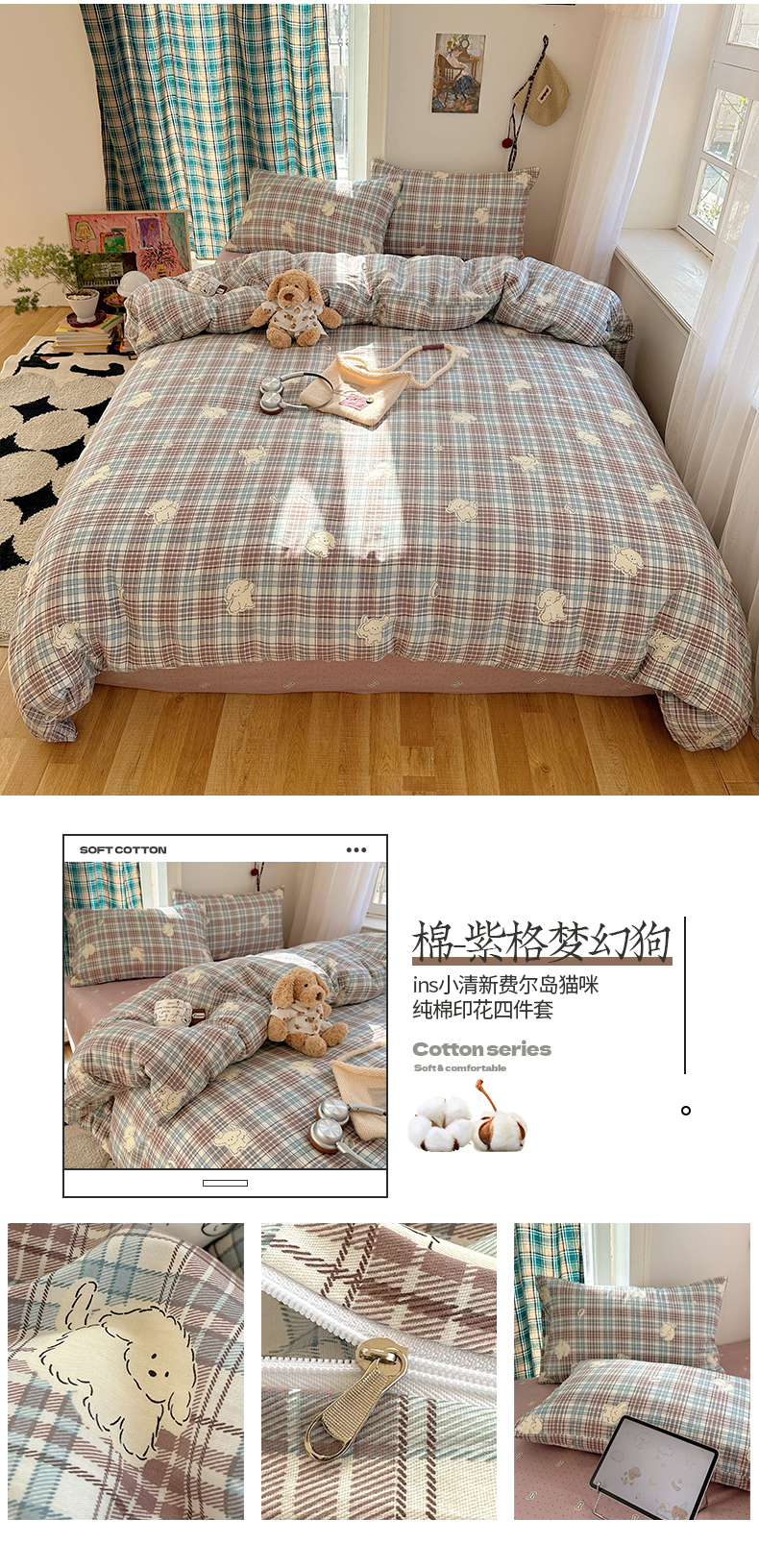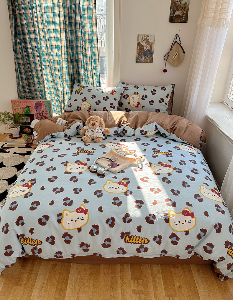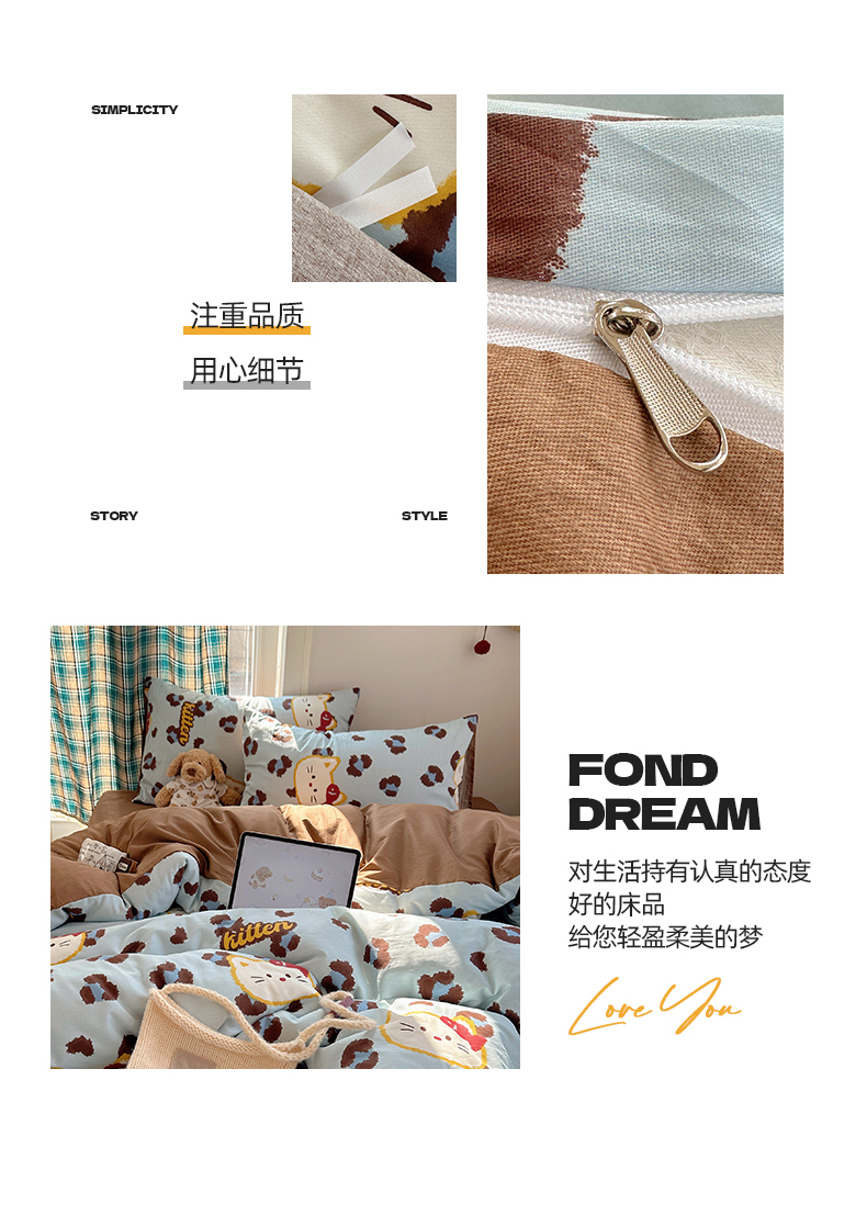 当前位置: 91家纺网 > 商品网购 > 床品套件 > 四件套 > 全棉普通四件套 > 桃子家居 2026新款ins小清新费尔岛猫咪全棉纯棉印花四件套 棉-喵吃鱼蓝