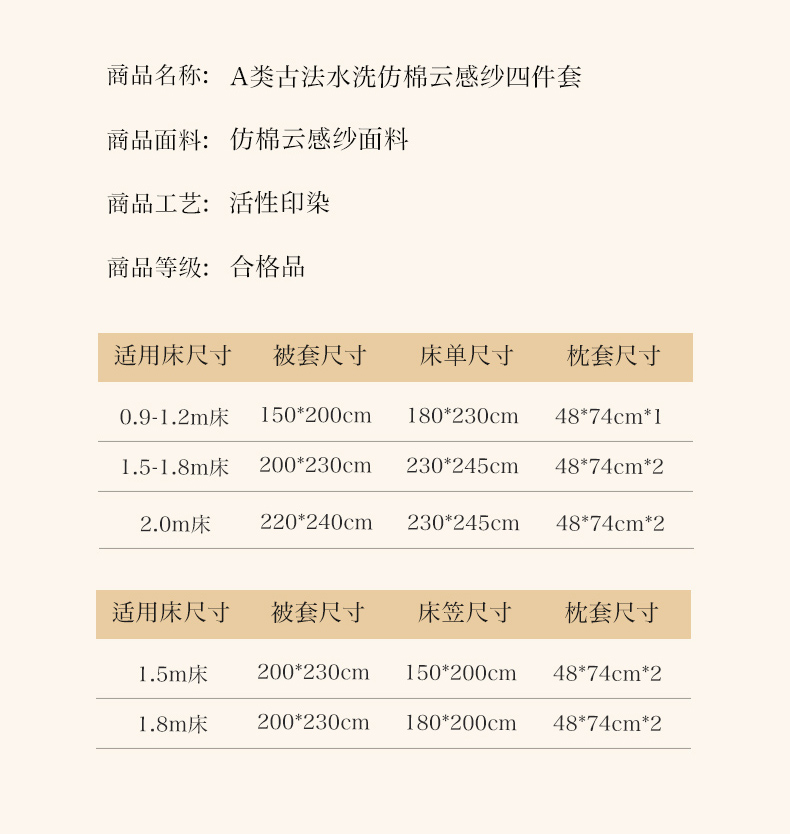 【床单款】1.5四件套-被套200x230 | ¥52.00 |