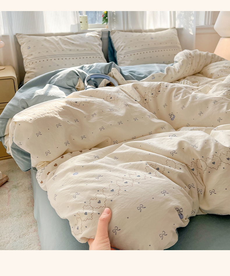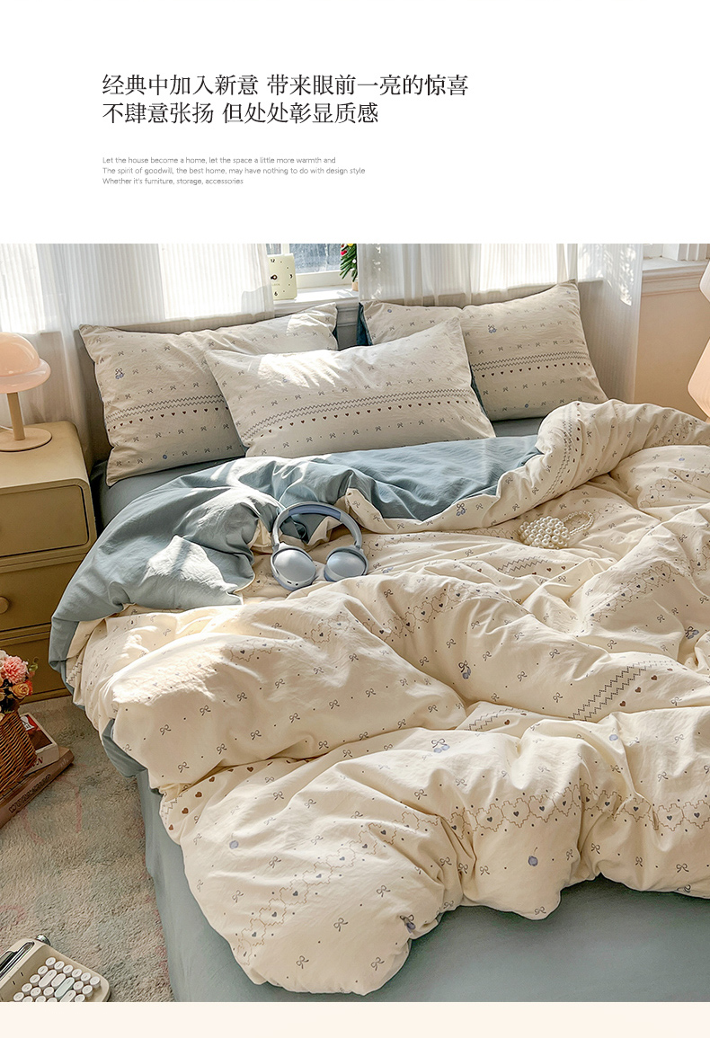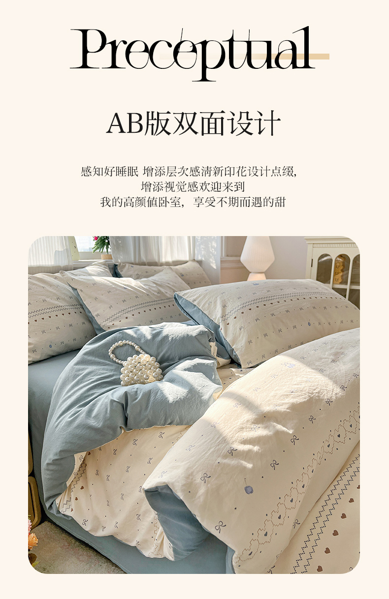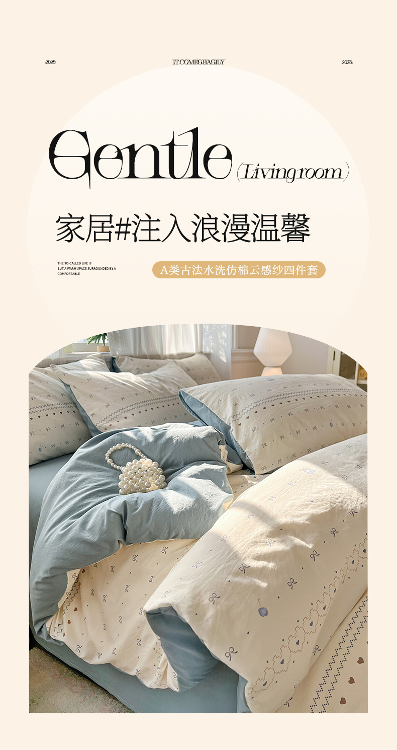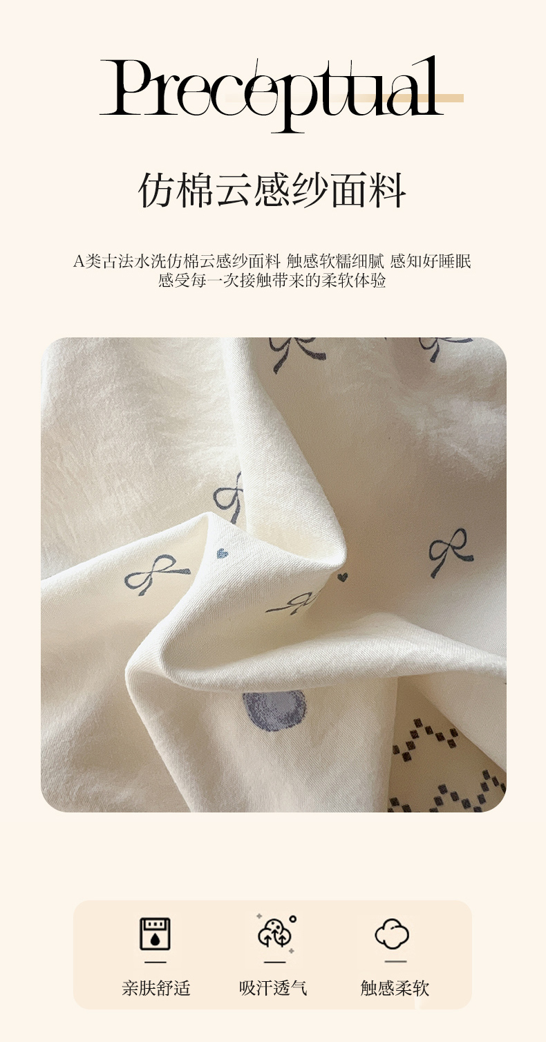 当前位置: 91家纺网 > 商品网购 > 床品套件 > 四件套 > 水洗棉四件套 > 格真 2026新款韩国小布袋A类古法水洗仿棉云感纱四件套 小情调