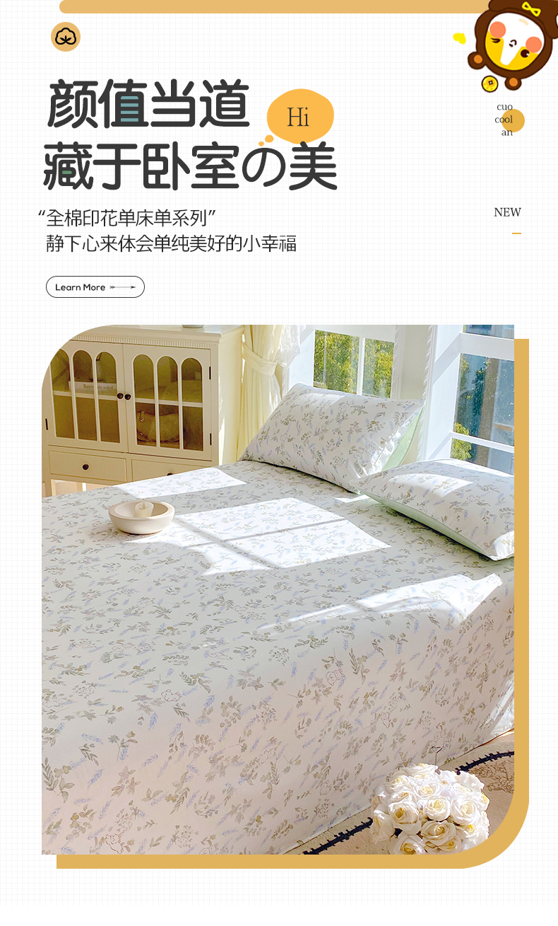 • 91家纺网 家纺一手货源 找家纺 小懒猪 2026全棉纯棉印花单床单床单单件 森屹兔眠