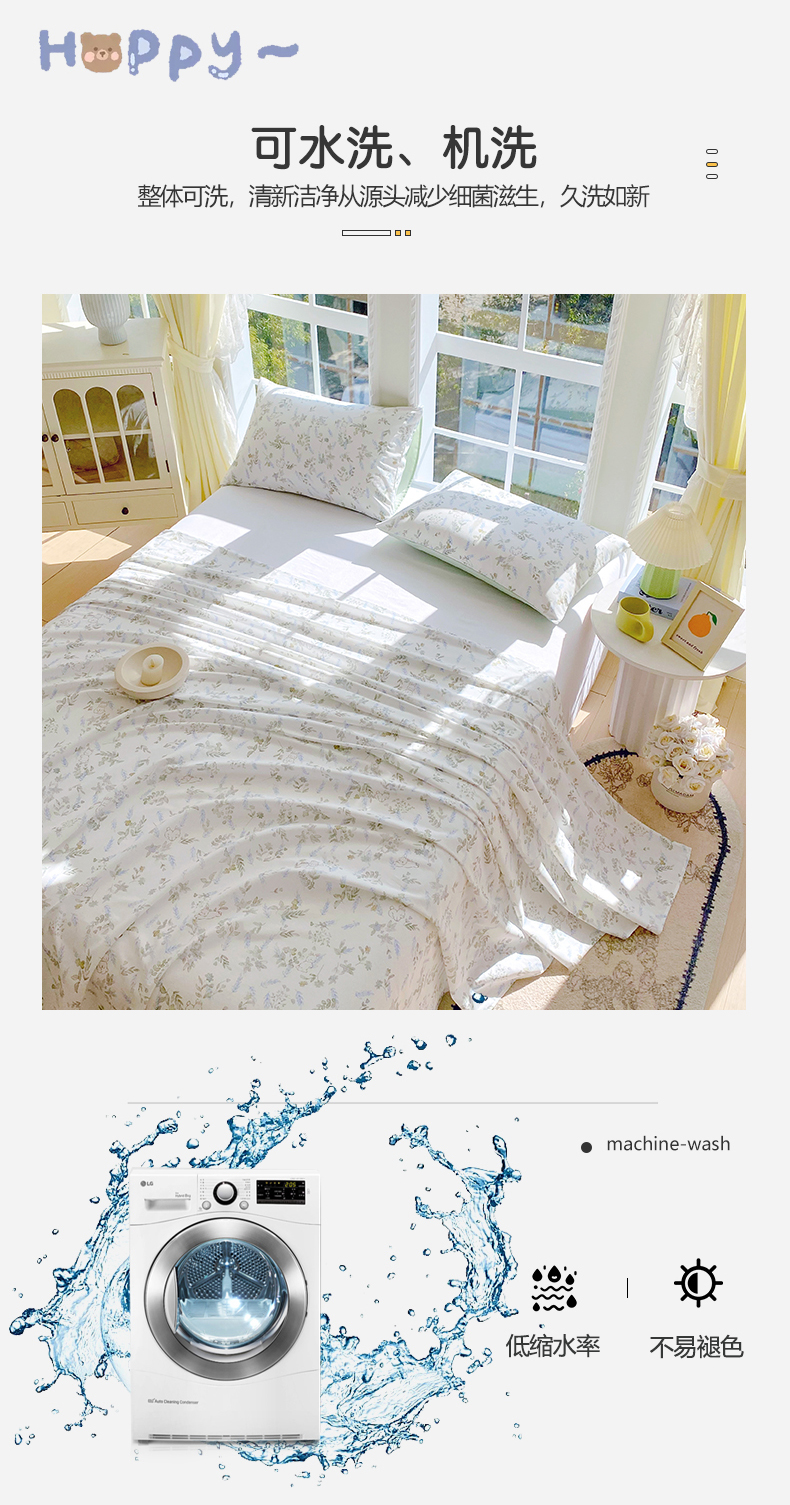 (总)小懒猪 2025新款全棉有氧有氧双层纱清新印花四件套,姹紫嫣红,繁花似锦,富贵满园,蓝花倩影,玫瑰花语,青枝绿叶