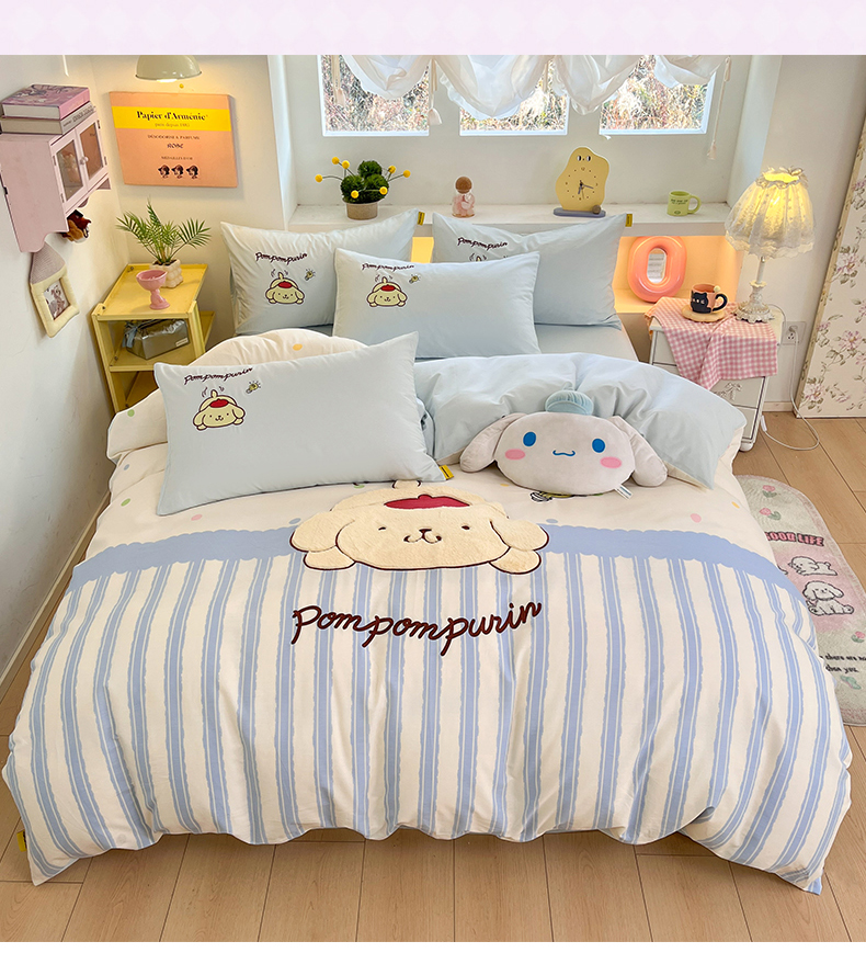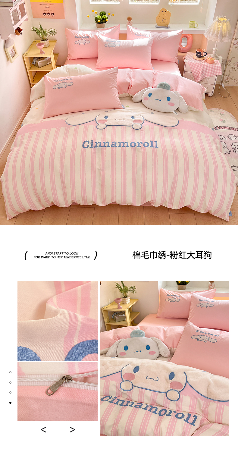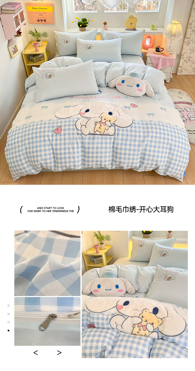 (总)金爱家 2025新款A类三丽鸥正版授权云柔水洗棉兔毛贴布绣刺绣软糯系列四件套,云柔水洗棉-贴布绣粉格KT,云柔水洗棉-贴布绣蓝格布丁狗,云柔水洗棉-贴布绣蓝格KT,云柔水洗棉-贴布绣美乐蒂,云柔水洗棉-贴布绣萌萌布丁狗,云柔水洗棉-贴布绣你好大耳狗,云柔水洗棉-贴布绣紫格库洛米