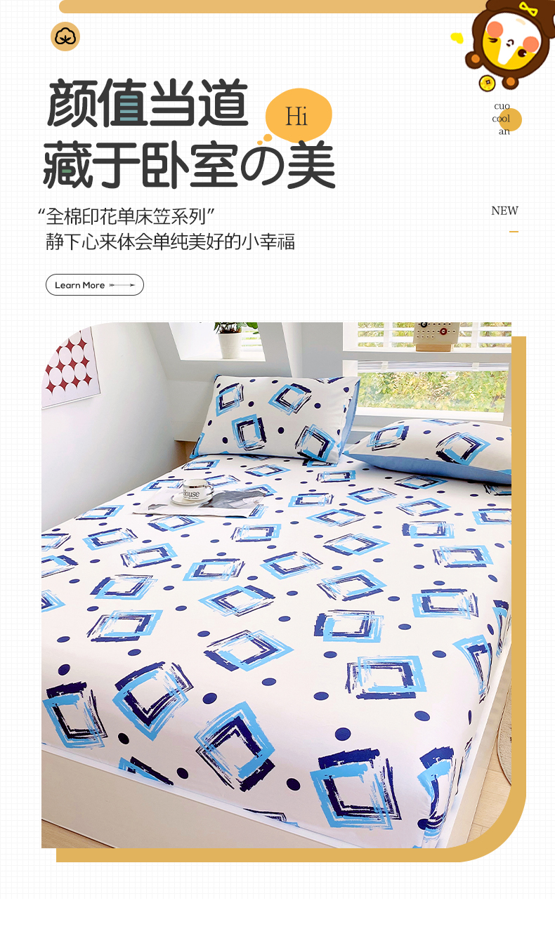 • 91家纺网 家纺一手货源 找家纺 小懒猪 2026新款全棉印花床笠 清棱