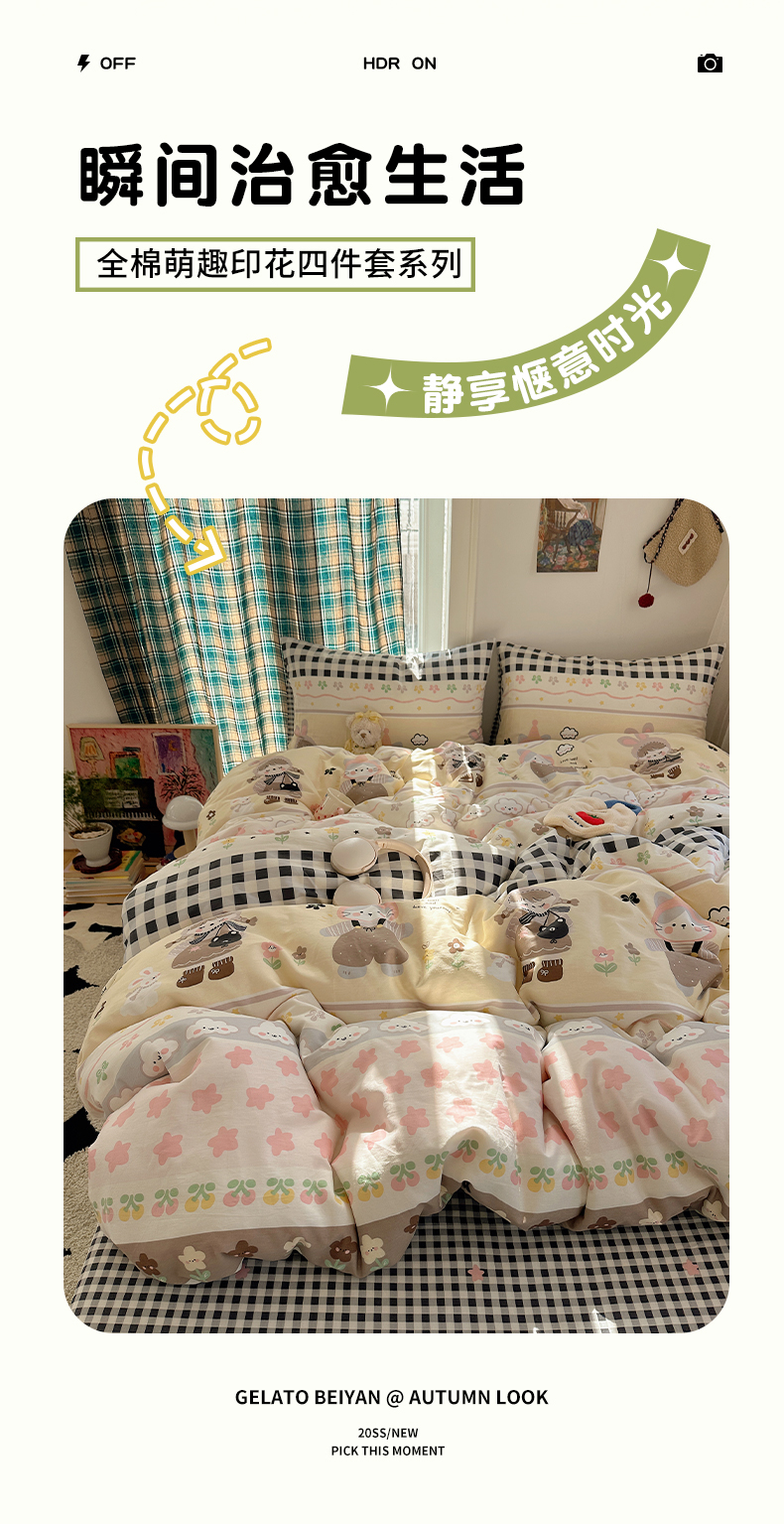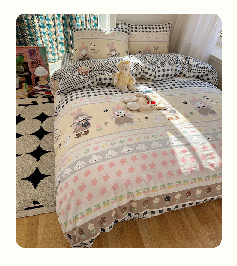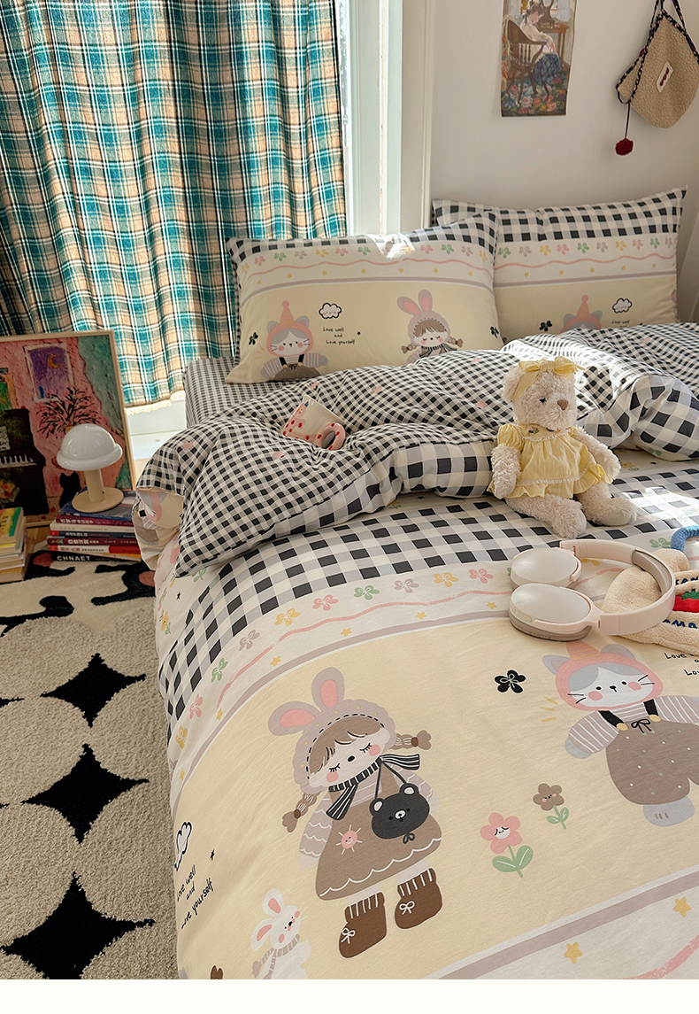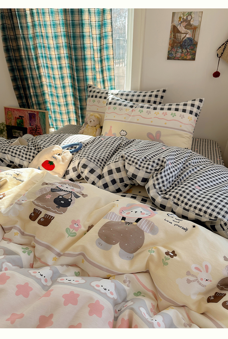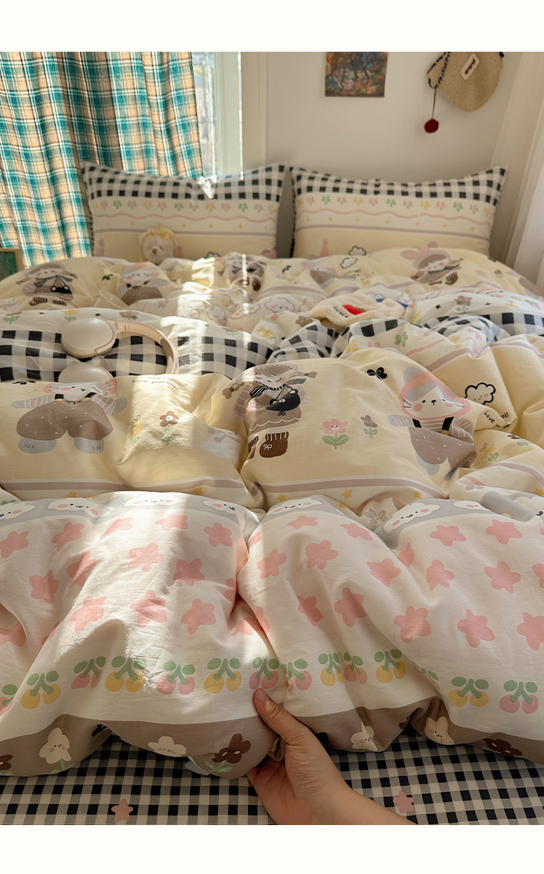 当前位置: 91家纺网 > 商品网购 > 床品套件 > 四件套 > 全棉普通四件套 > 瑞莱 2026春季新款全棉纯棉印花小清新萌趣系列四件套 甜梦日记