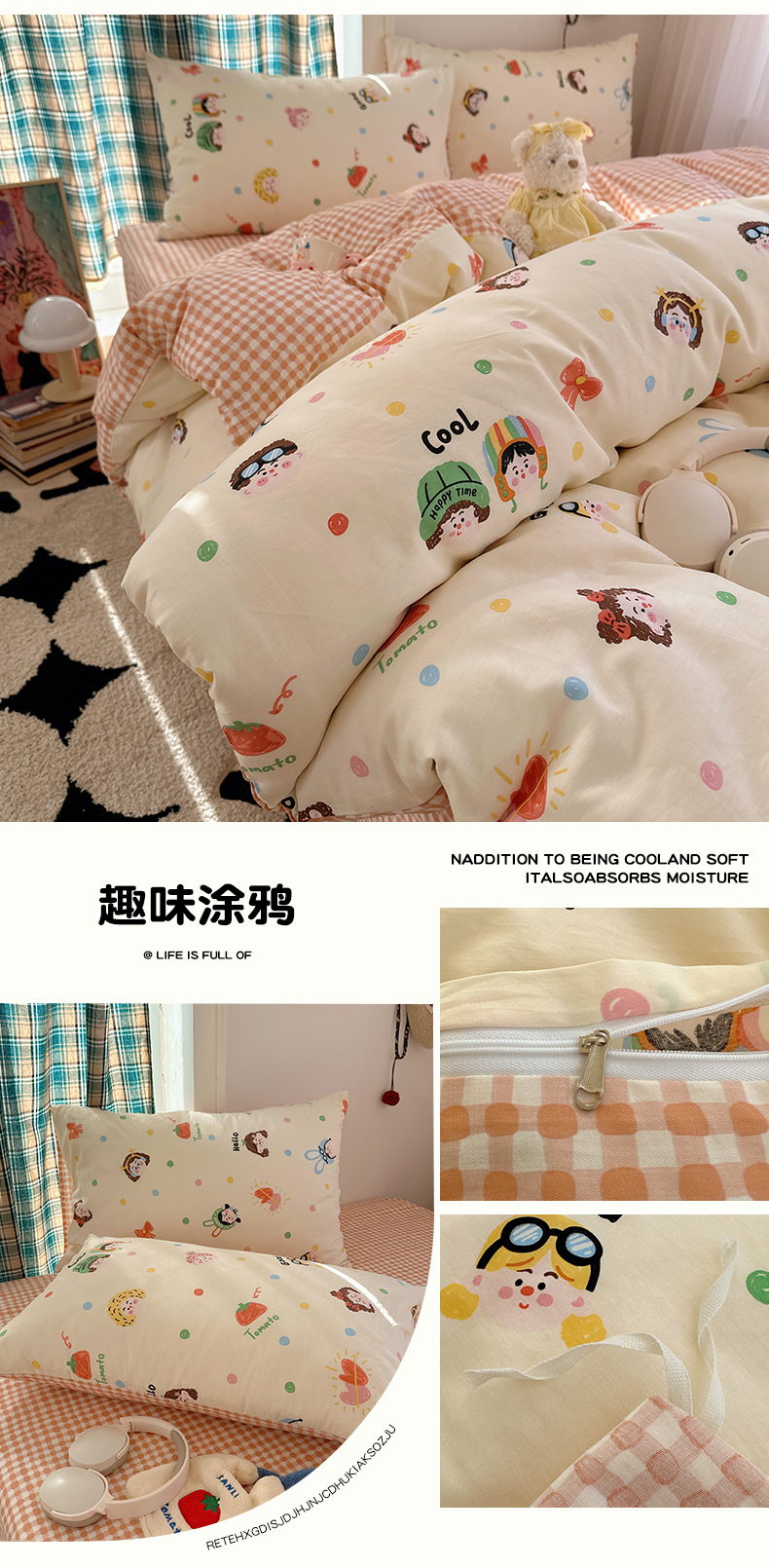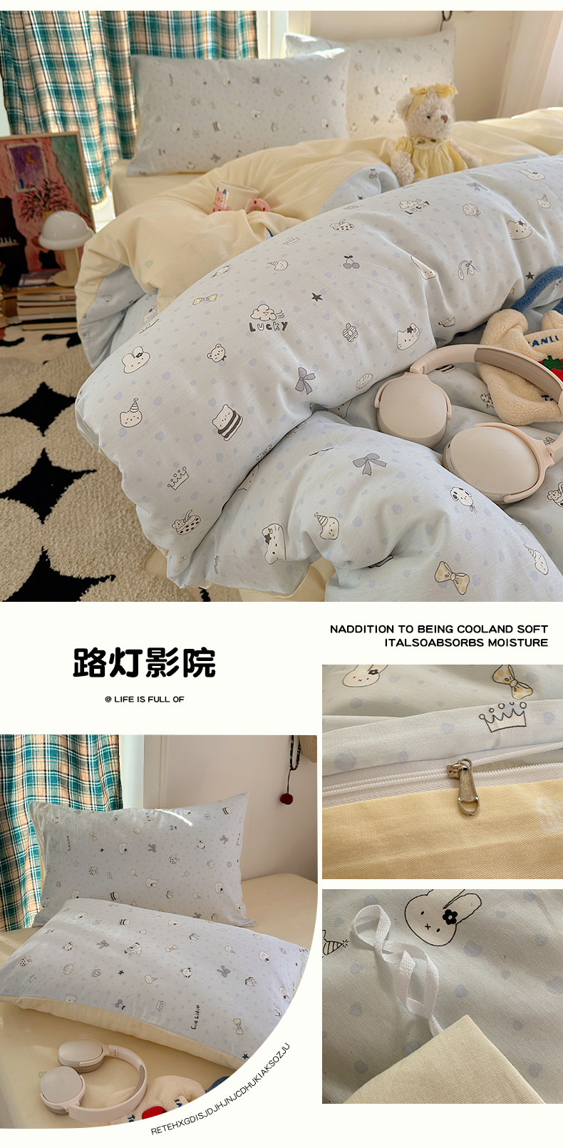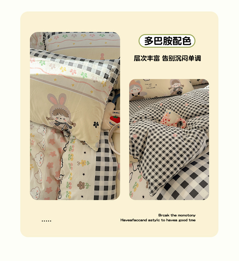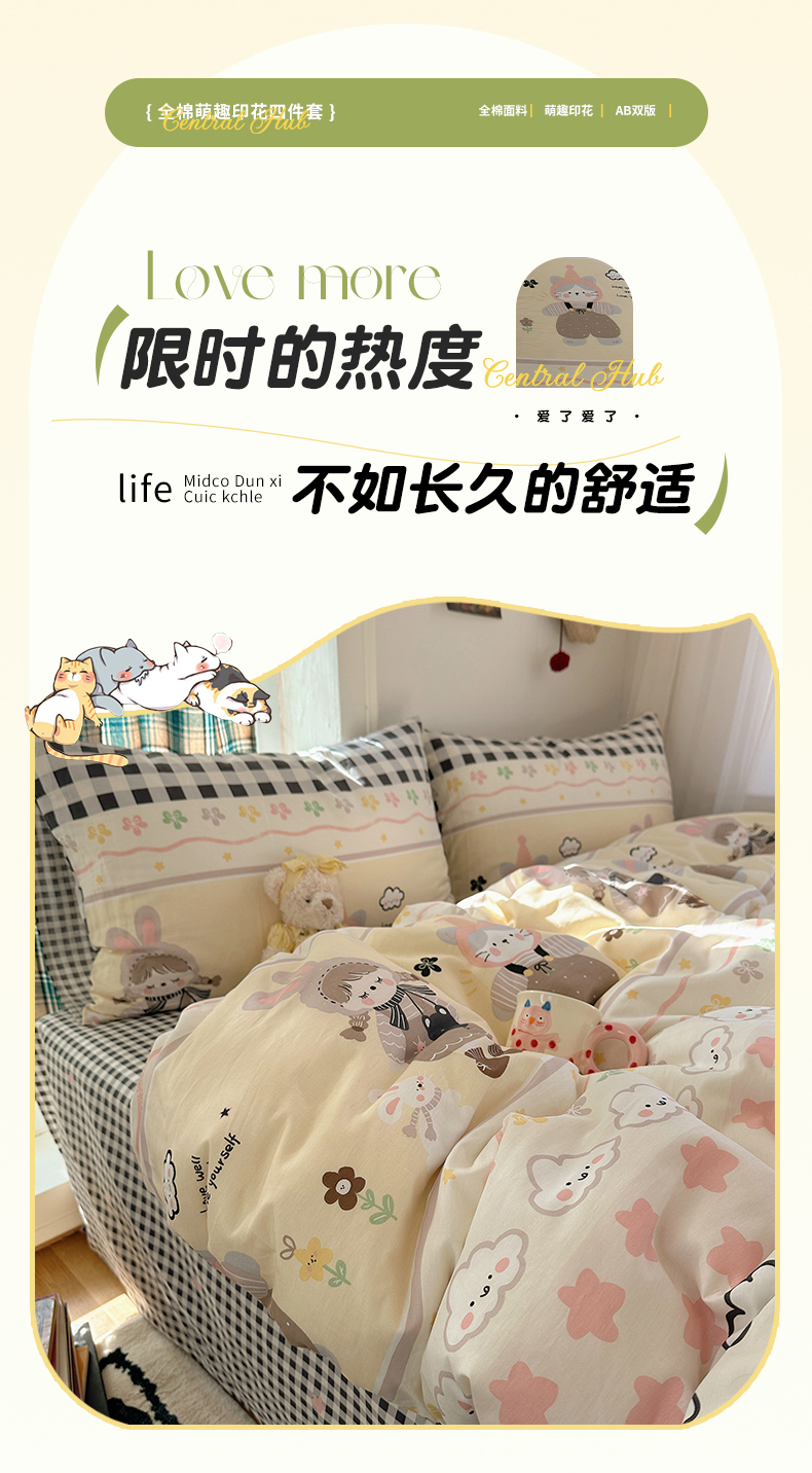 当前位置: 91家纺网 > 商品网购 > 床品套件 > 四件套 > 全棉普通四件套 > 瑞莱 2026春季新款全棉纯棉印花小清新萌趣系列四件套 甜梦日记