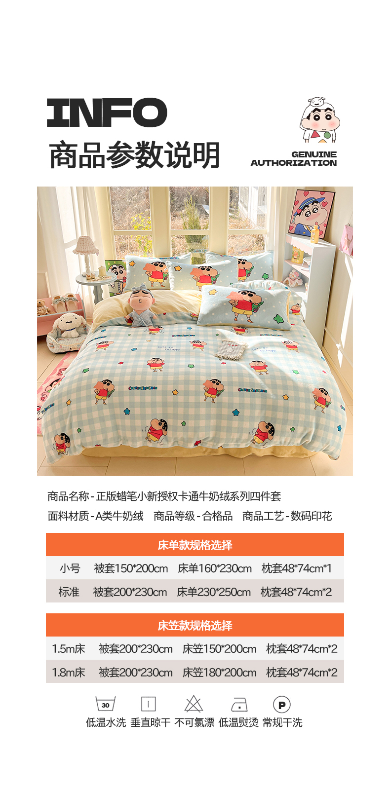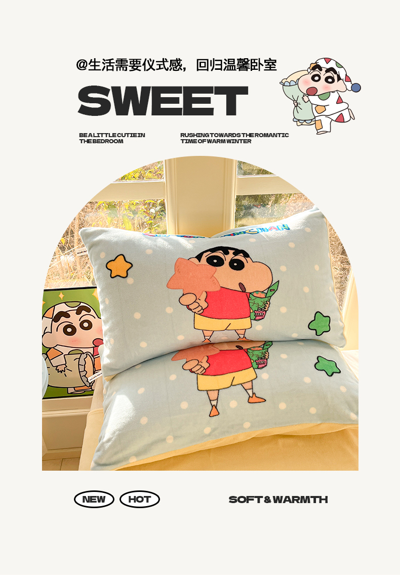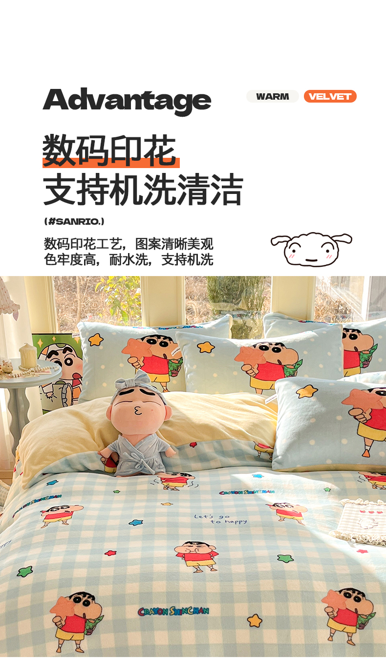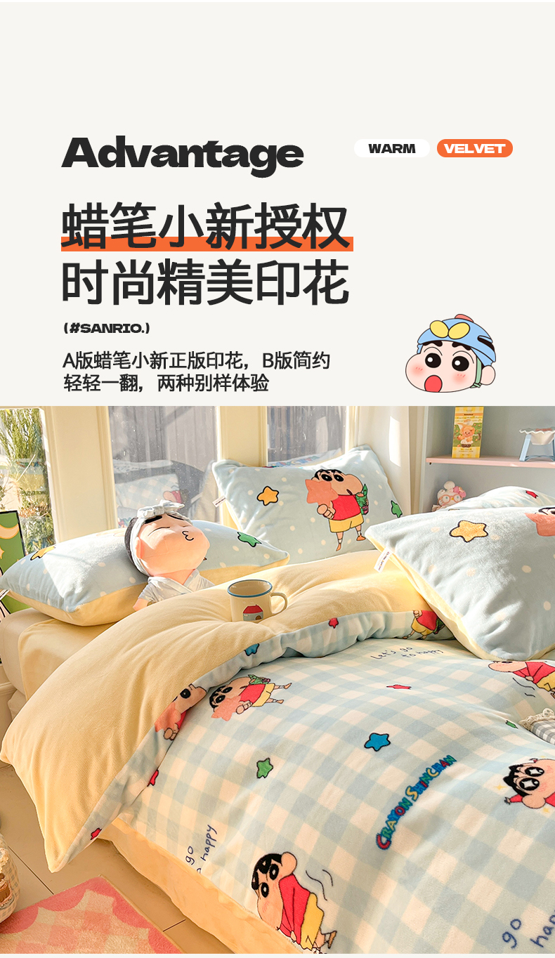 (总)桃子家居 2026新款A类蜡笔小新正版授权卡通加厚高克重牛奶绒系列四件套,绒-欢乐小新,绒-蓝格星星小新,绒-贪睡小新,绒-幸福小新