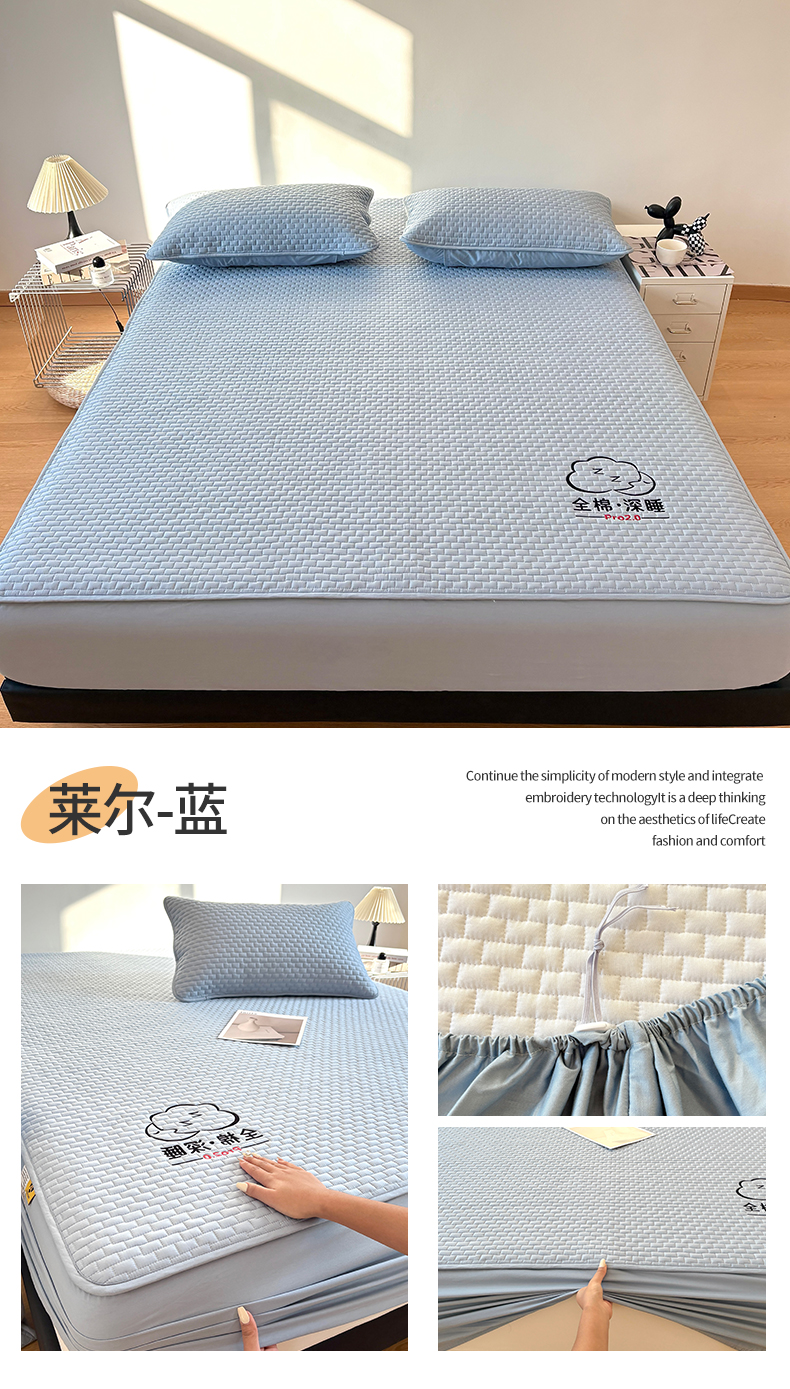 • 91家纺网 家纺一手货源 找家纺 居眠 2026新款莱尔-全棉深睡夹棉床笠 莱尔-蓝