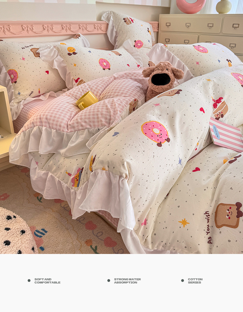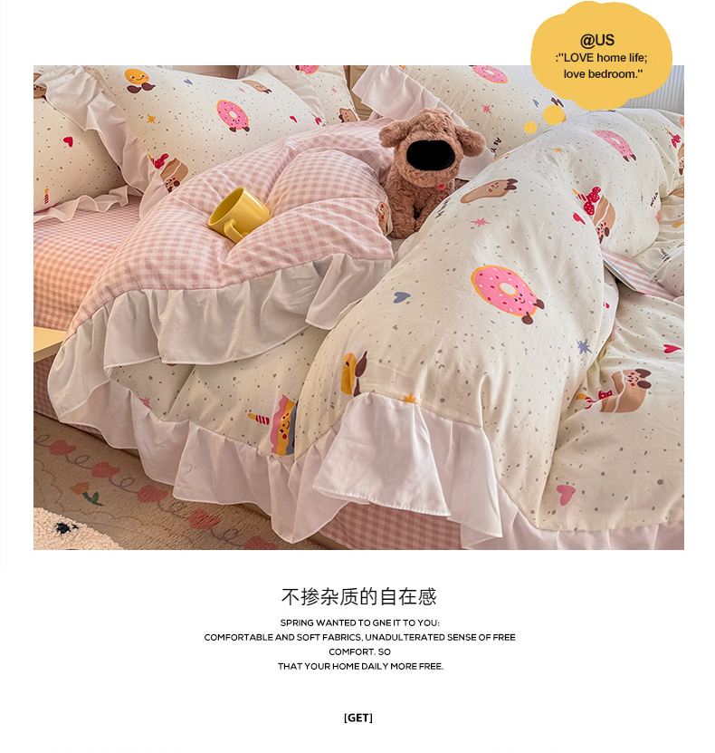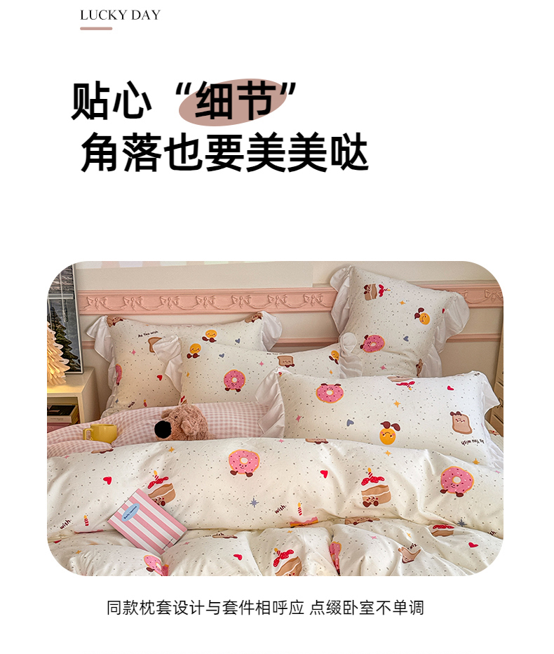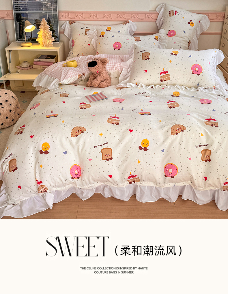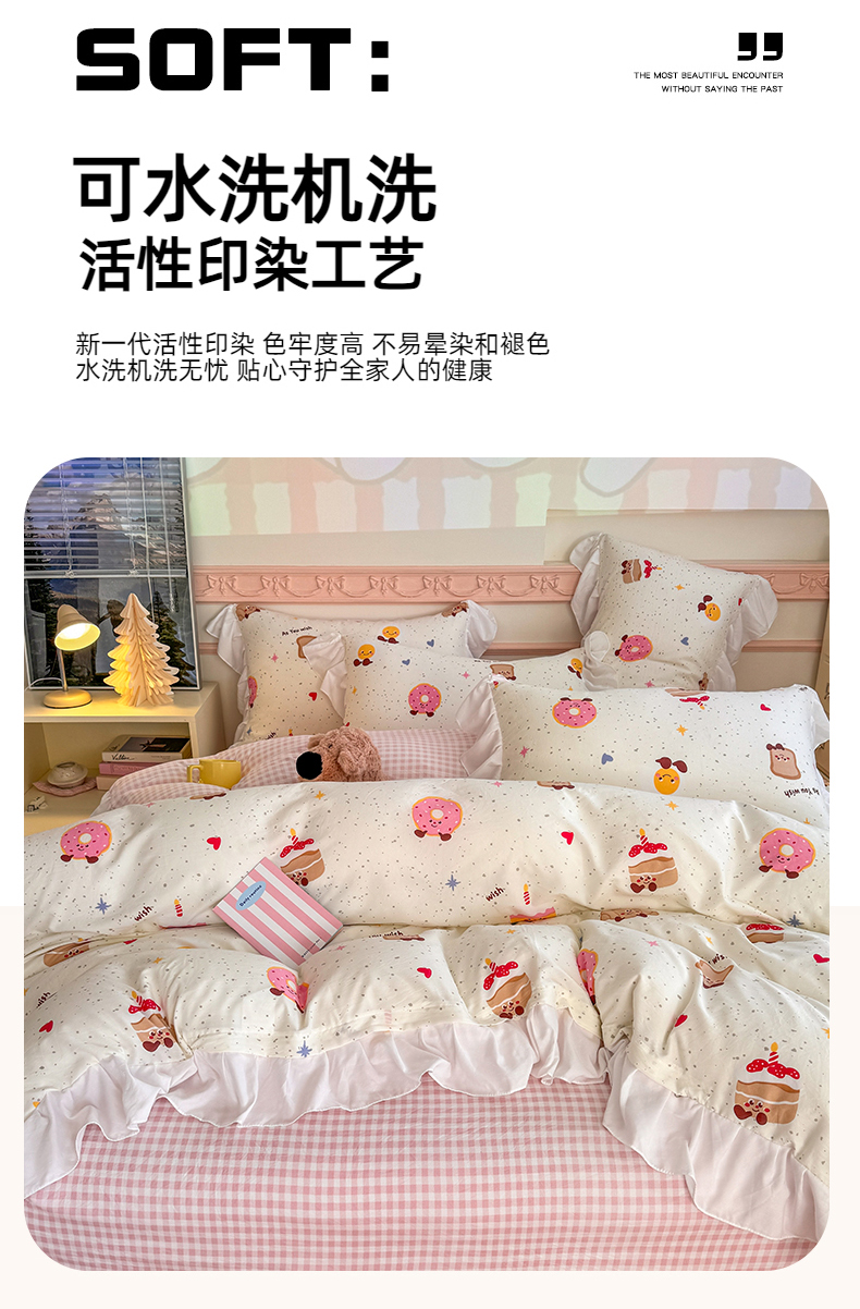 当前位置: 91家纺网 > 商品网购 > 床品套件 > 四件套 > 水洗棉四件套 > 温眠家纺 2025新款水洗云朵棉韩式INS减龄花边款四件套 蛋糕仔仔