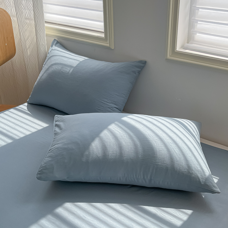 温眠家纺 2025新款水洗棉色织单床单系列-单枕套 小绿格