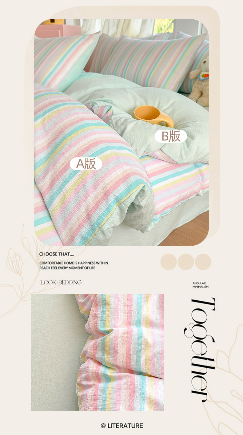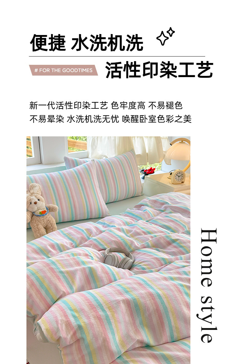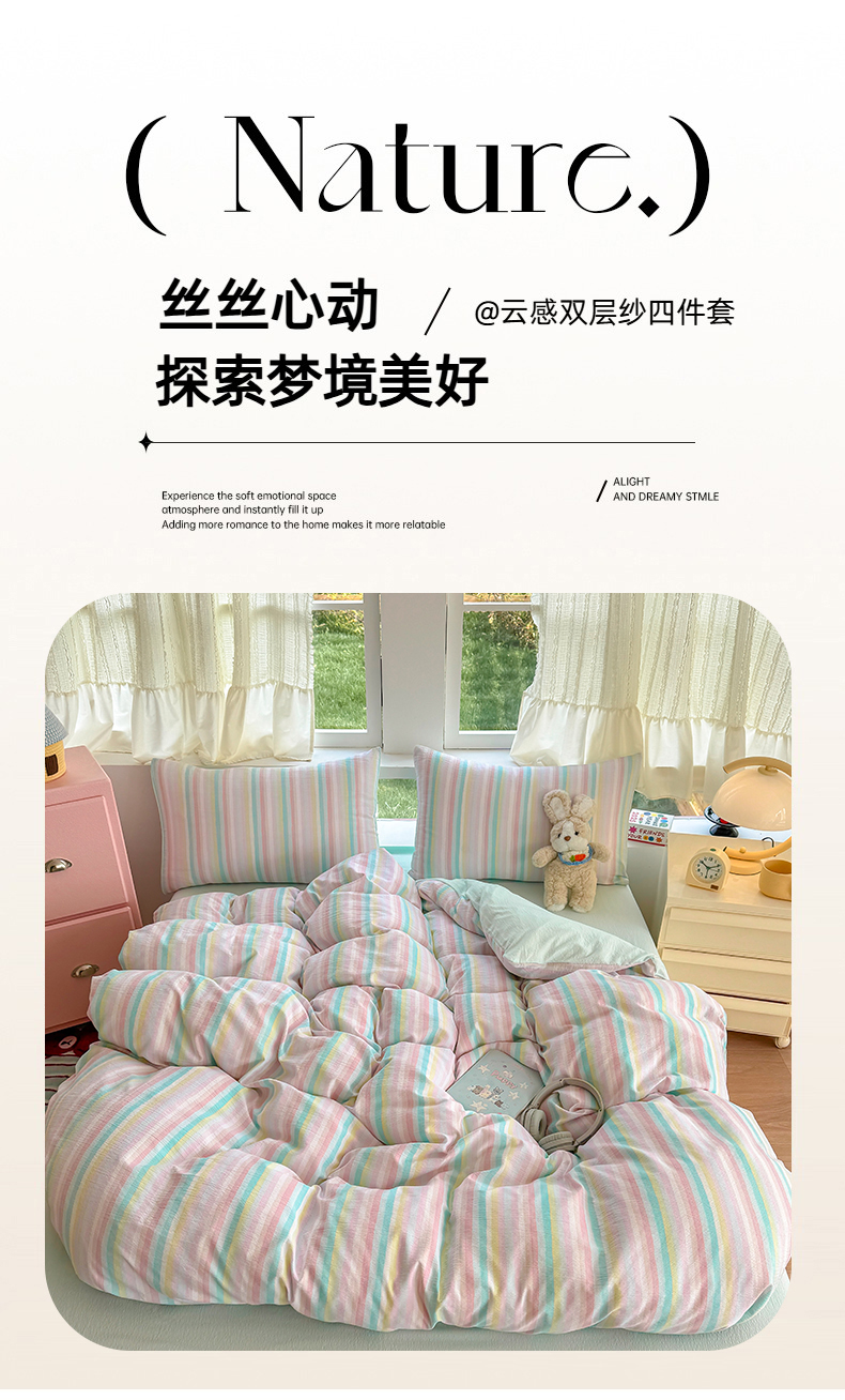 当前位置: 91家纺网 > 商品网购 > 床品套件 > 四件套 > 双层纱四件套 > 温眠家纺 2025新款活性印染云感针织双层纱四件套 遇见彩虹