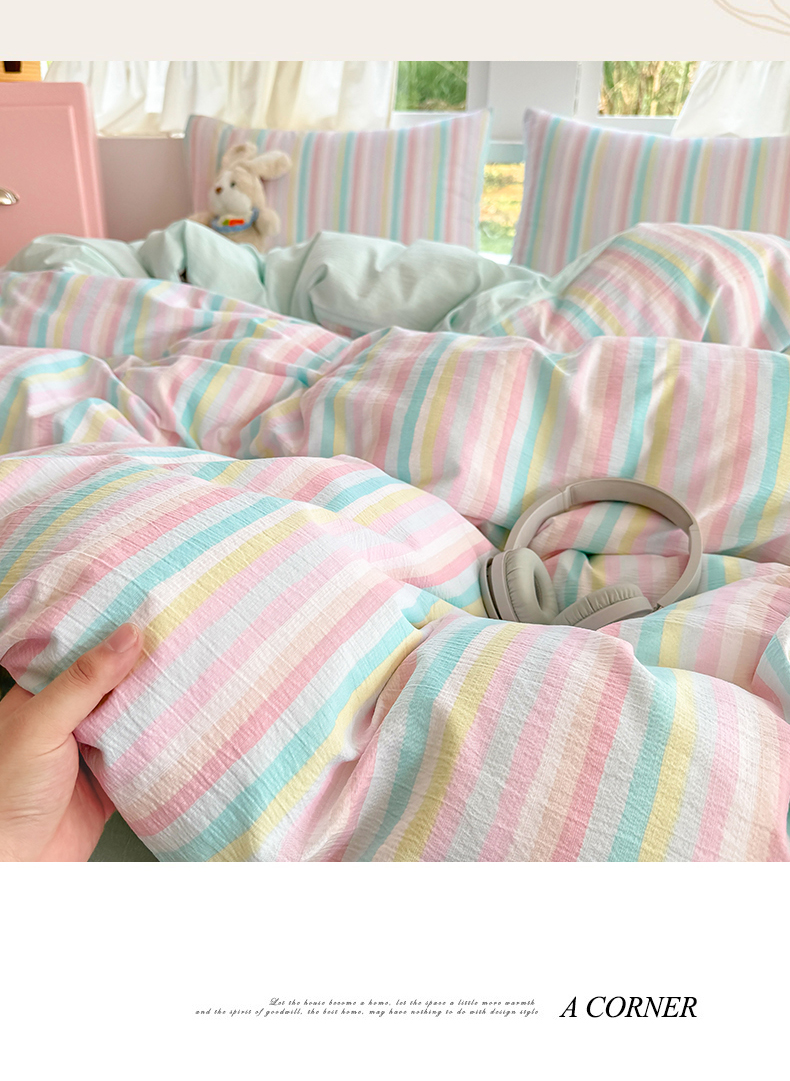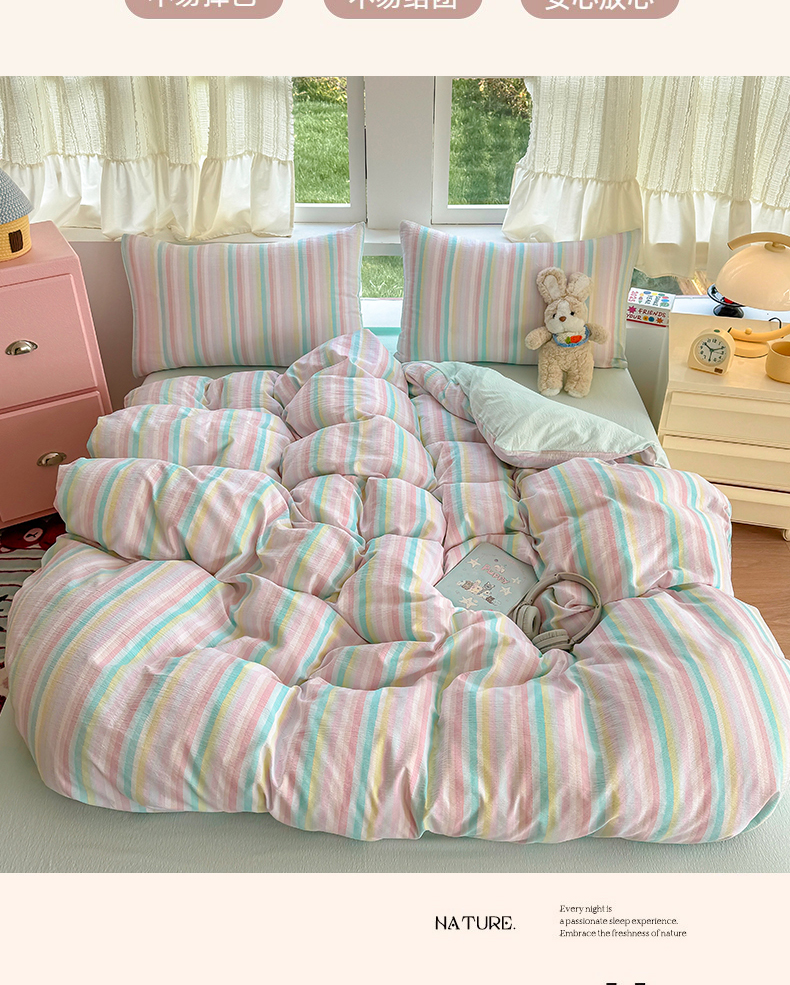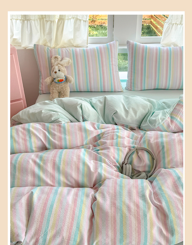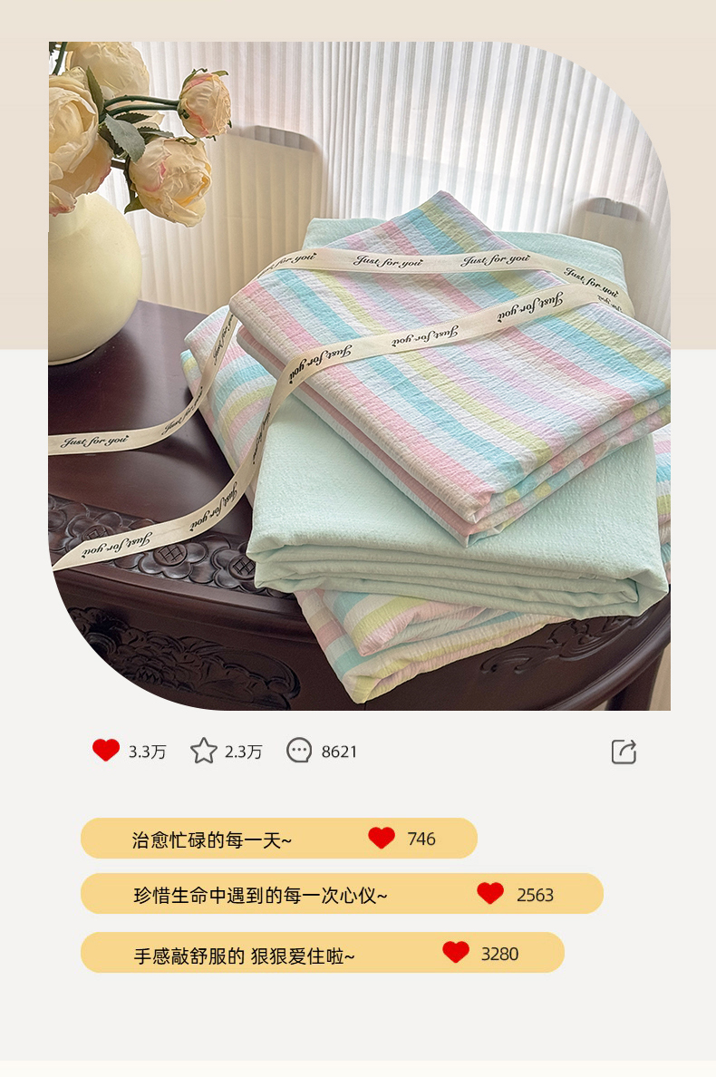 当前位置: 91家纺网 > 商品网购 > 床品套件 > 四件套 > 双层纱四件套 > 温眠家纺 2025新款活性印染云感针织双层纱四件套 遇见彩虹
