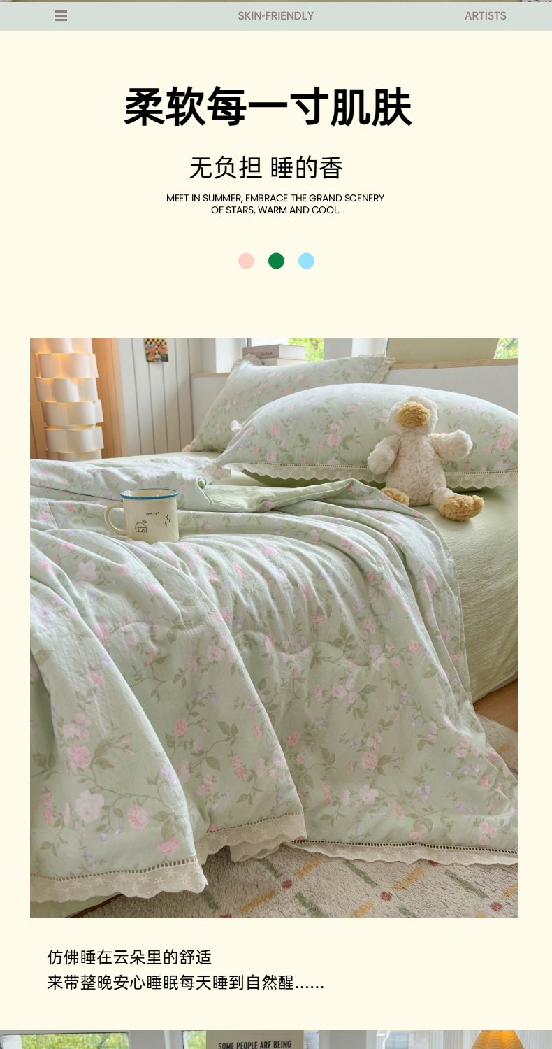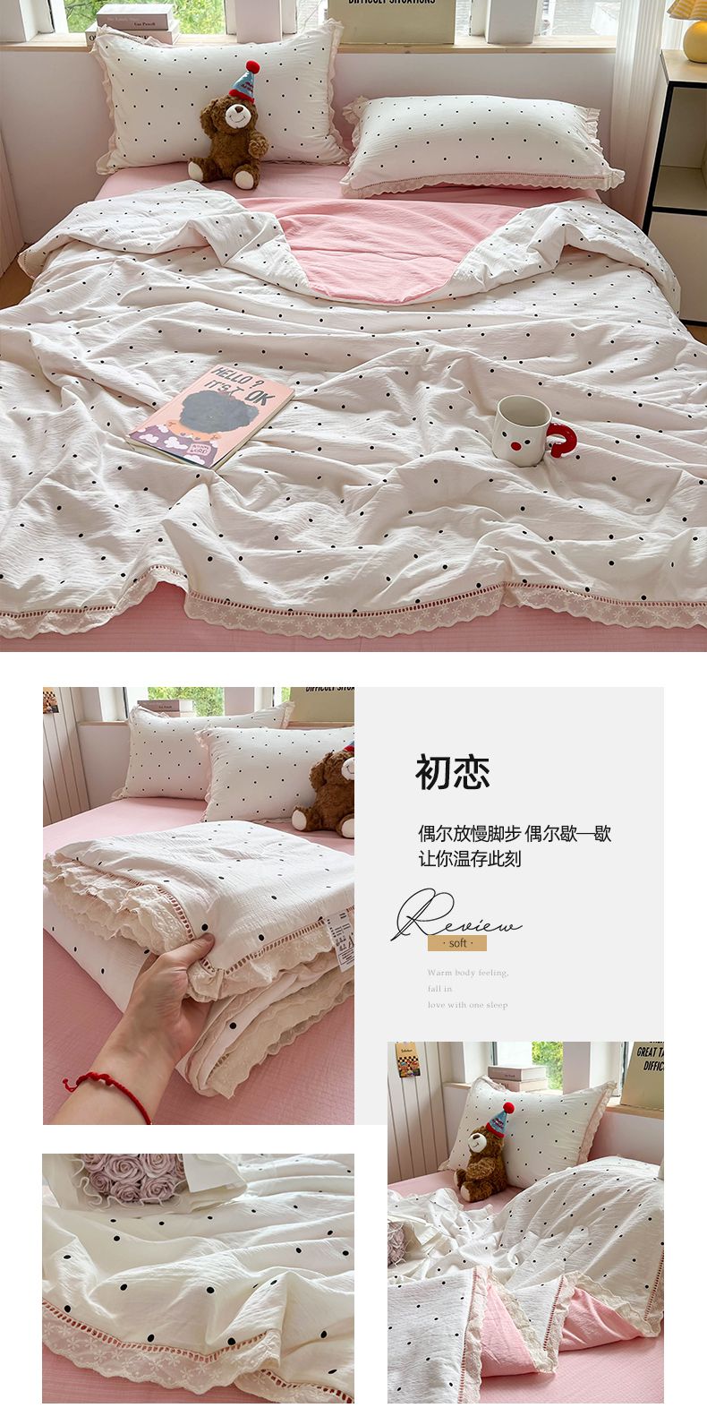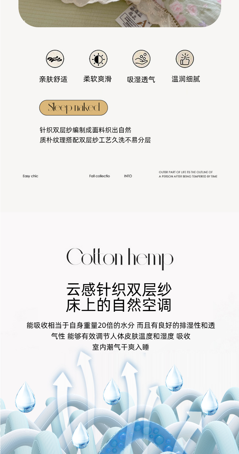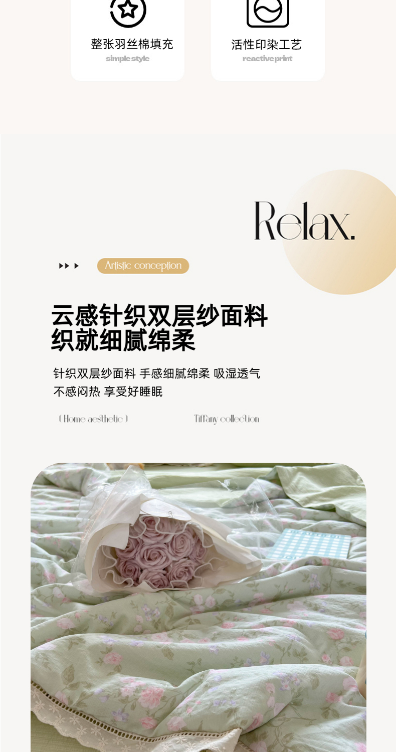商品名称:温眠家纺 2025新款云感双层纱镂空花边夏被四件套 木槿绿