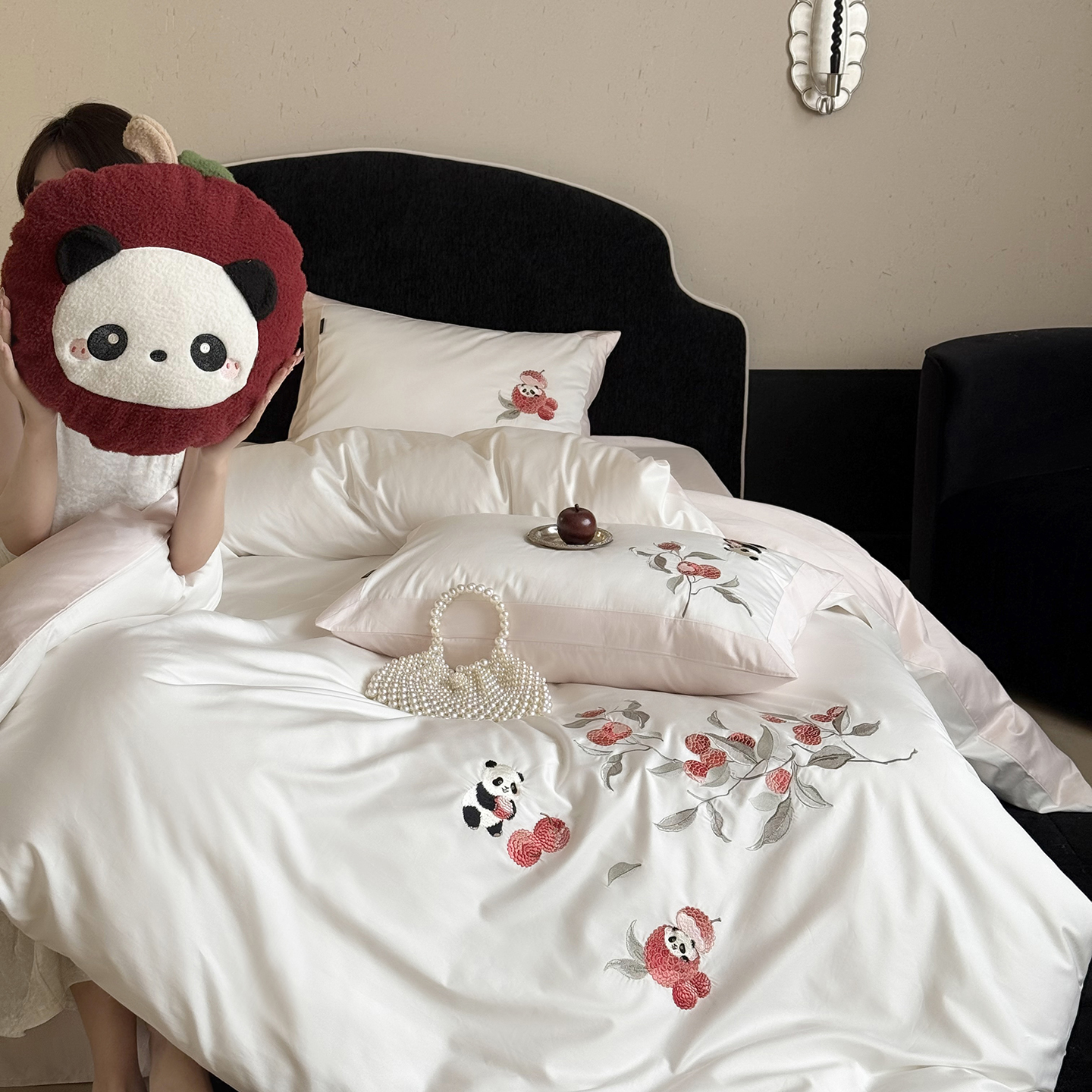 当前位置: 91家纺网 > 商品网购 > 床品套件 > 四件套 > 长绒棉四件套 > 鹿班家居 2026春季新品100S长绒棉精密刺绣系列四件套-熊猫荔荔 熊猫荔荔-粉色(标准会员-20元)