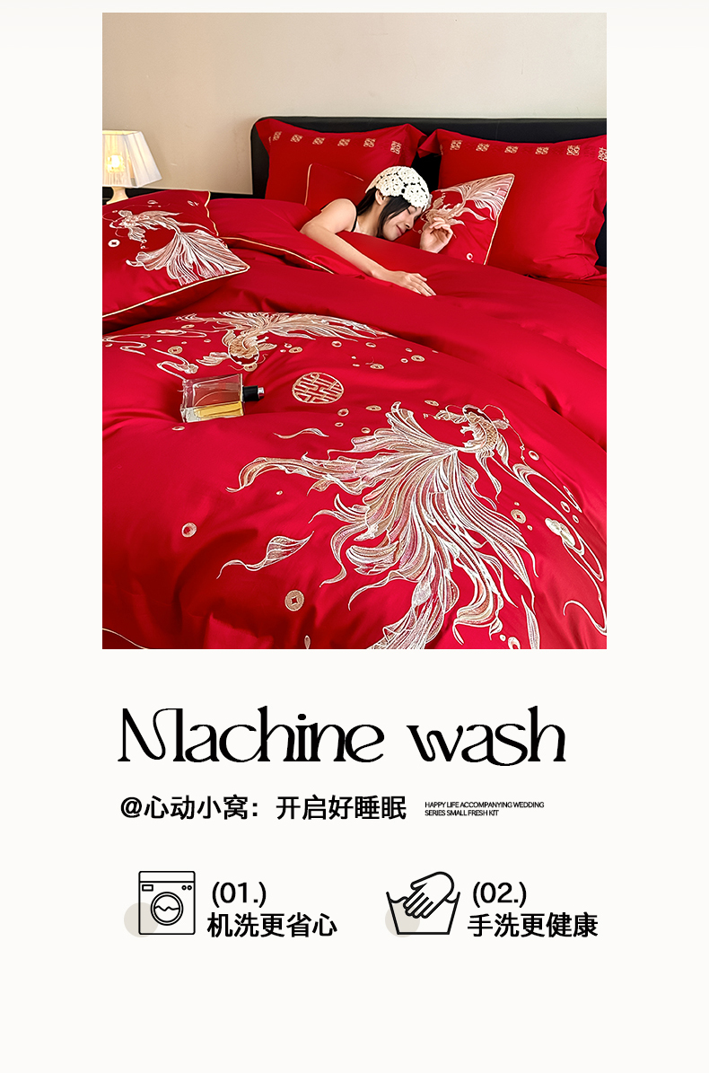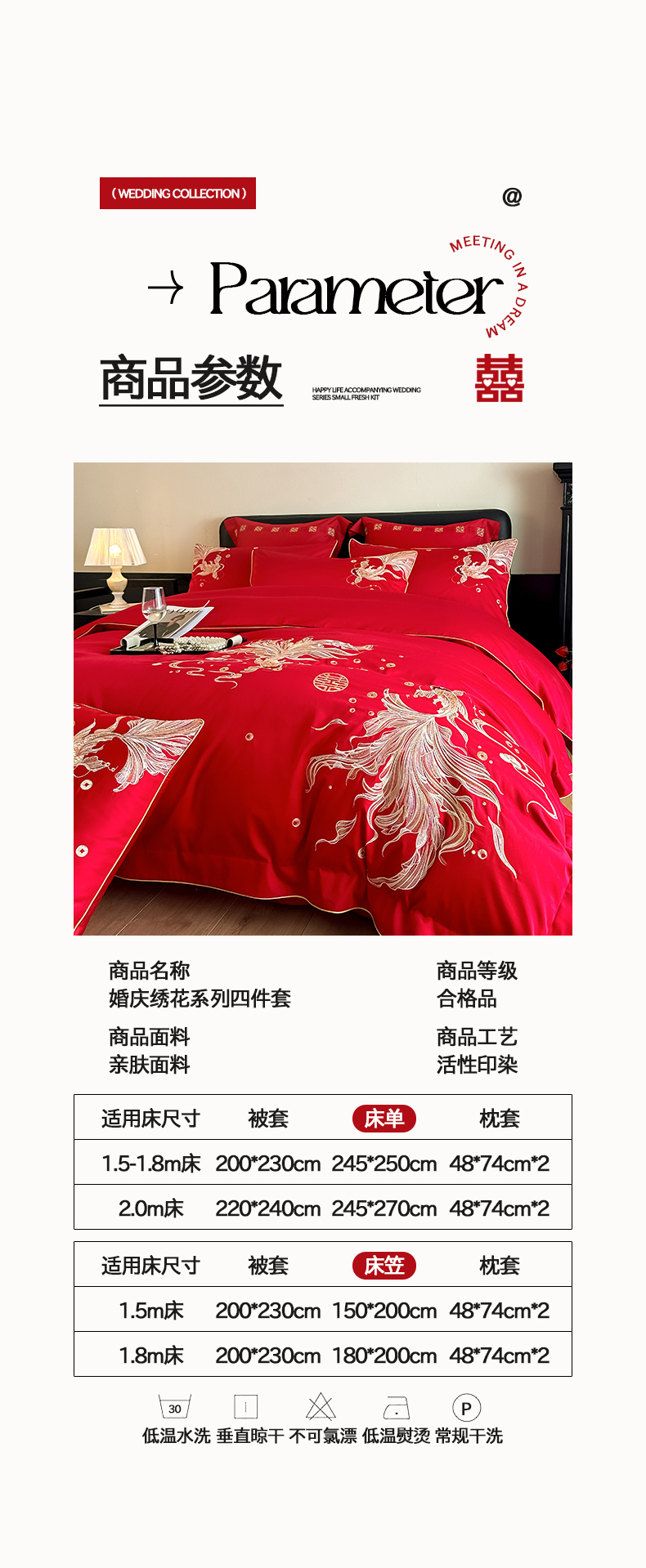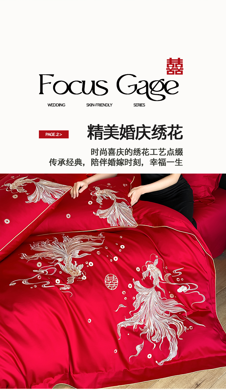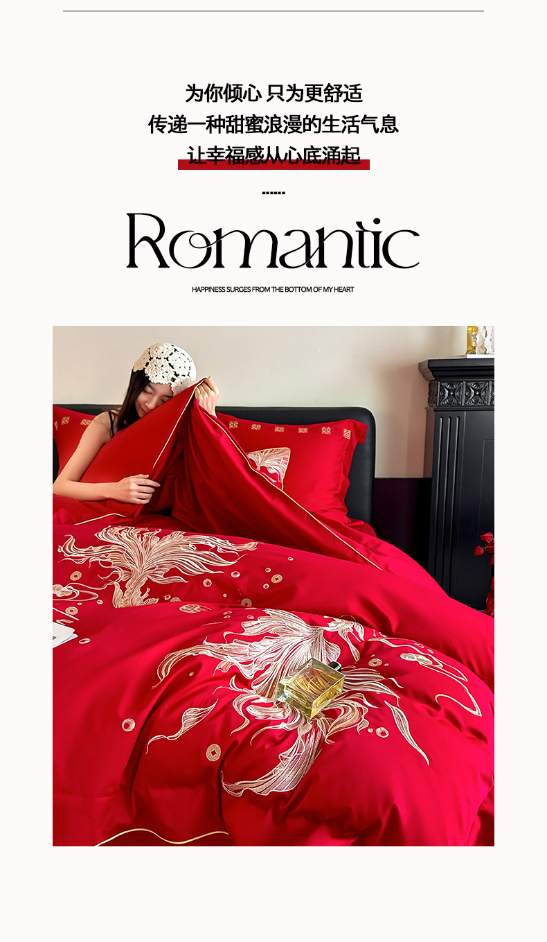 当前位置: 91家纺网 > 商品网购 > 床品套件 > 四件套 > 婚庆四件套 > 置顶家纺 2026新款小清新亲肤婚庆绣花四件套 富富有鱼-金大红