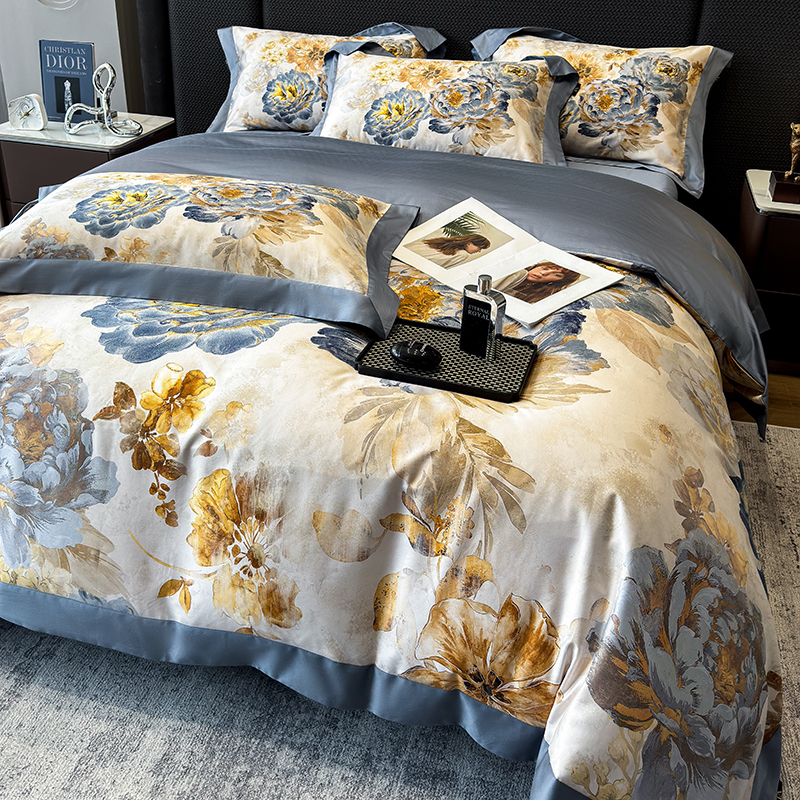 (总)东方名伶 2025新款莱赛尔兰精天丝棉数码印花宽边四件套,漫漫花开-紫,爱丁堡,漫漫花开-绿,莫奈花园紫,莫奈花园玉,波利花园紫,波利花园粉