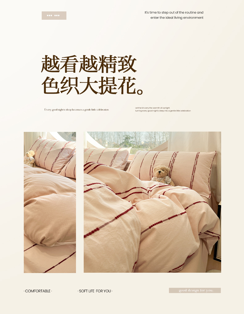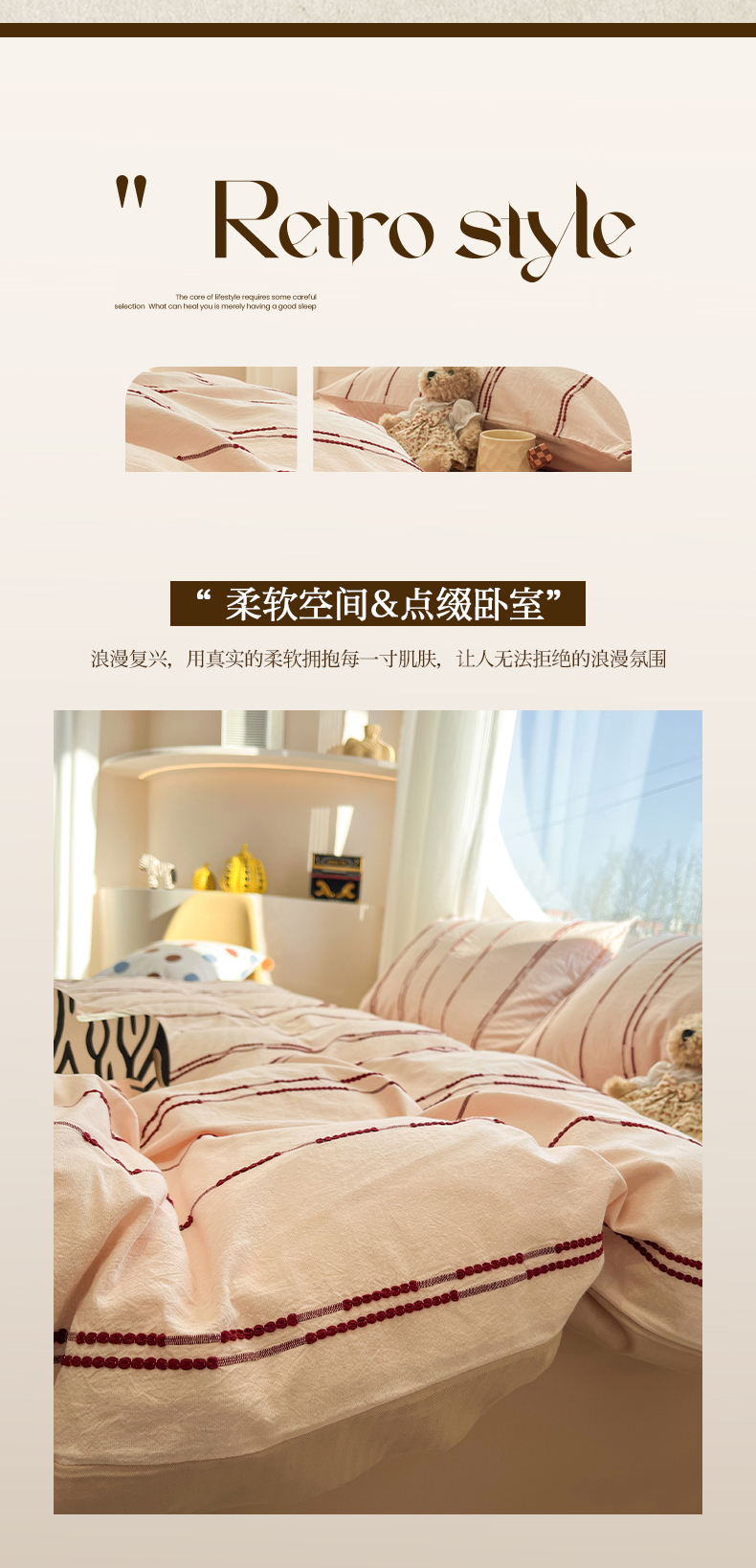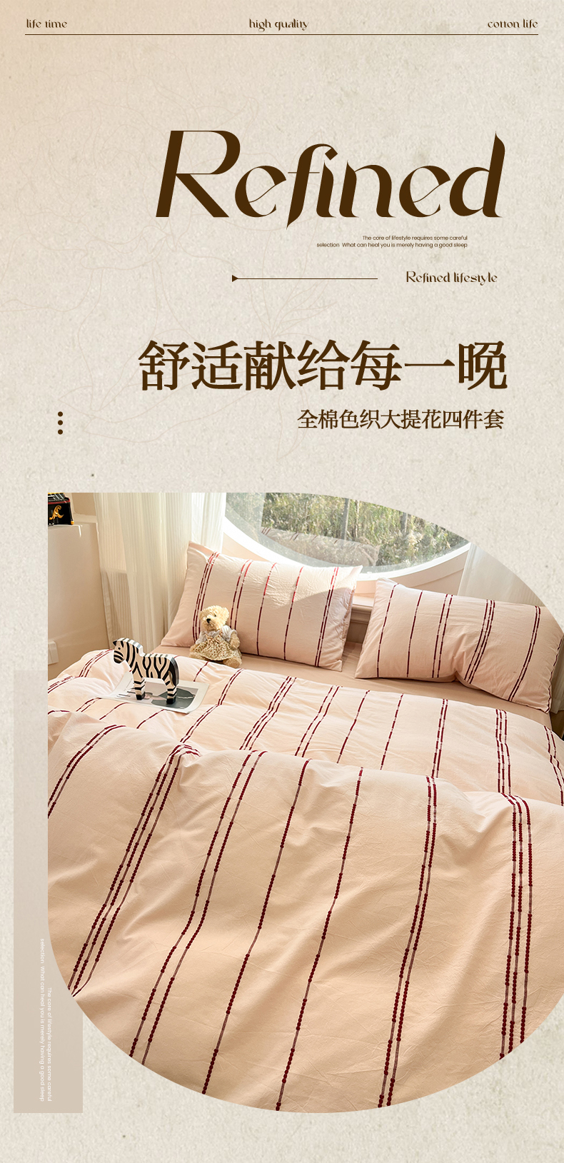 当前位置: 91家纺网 > 商品网购 > 床品套件 > 四件套 > 全棉普通四件套 > 莱茵家居 2026新款A类60支全棉纯棉复古美拉德色织提花四件套-慕星系列 慕星-浅粉