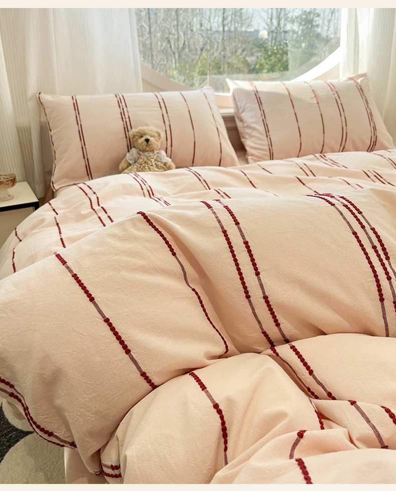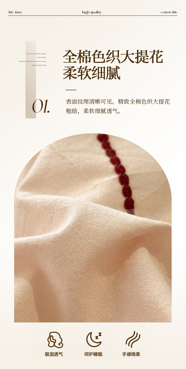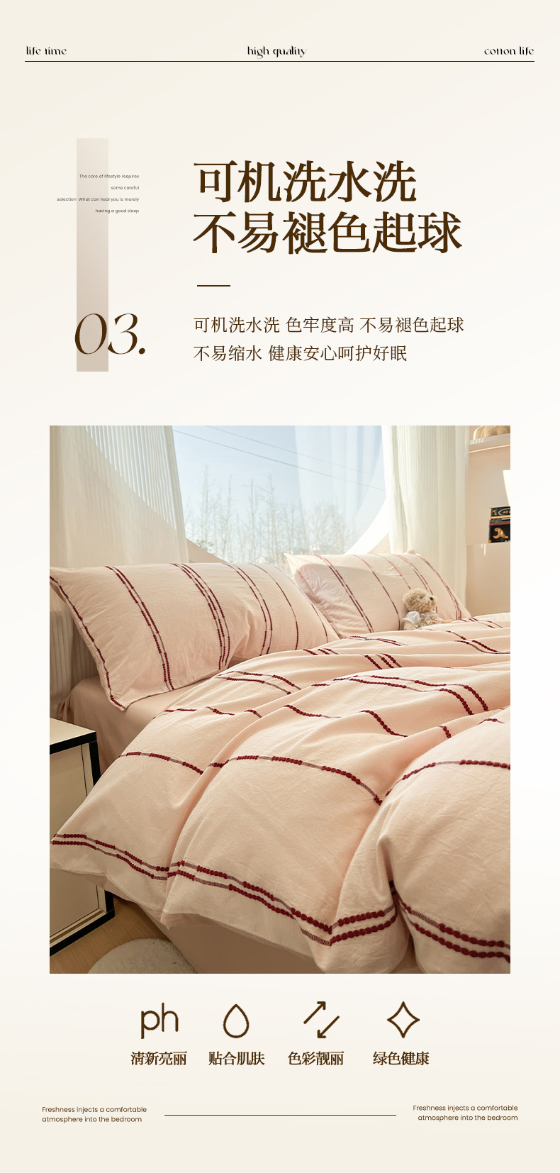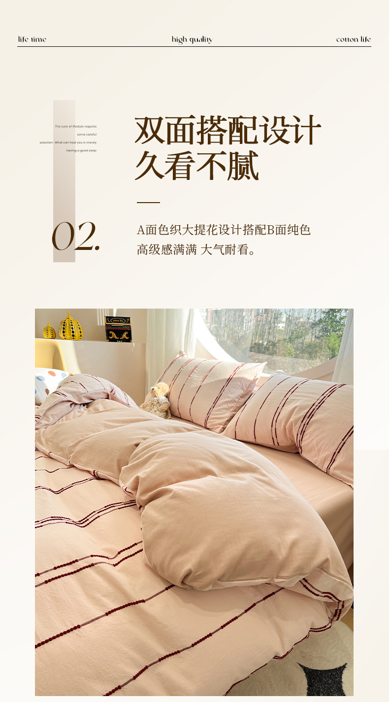 当前位置: 91家纺网 > 商品网购 > 床品套件 > 四件套 > 全棉普通四件套 > 莱茵家居 2026新款A类60支全棉纯棉复古美拉德色织提花四件套-慕星系列 慕星-浅粉
