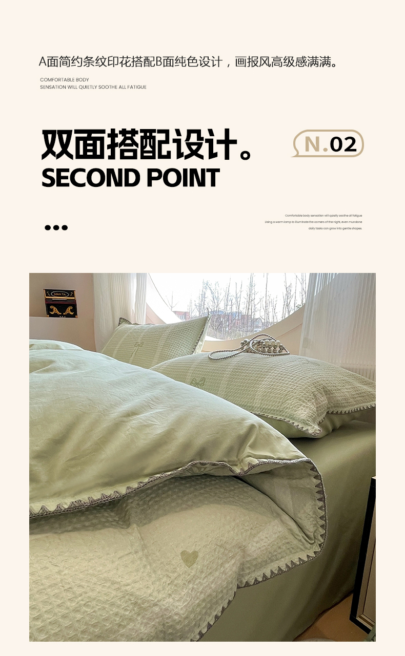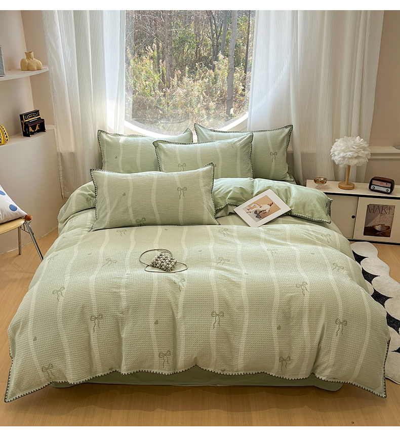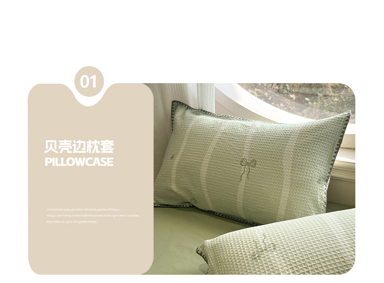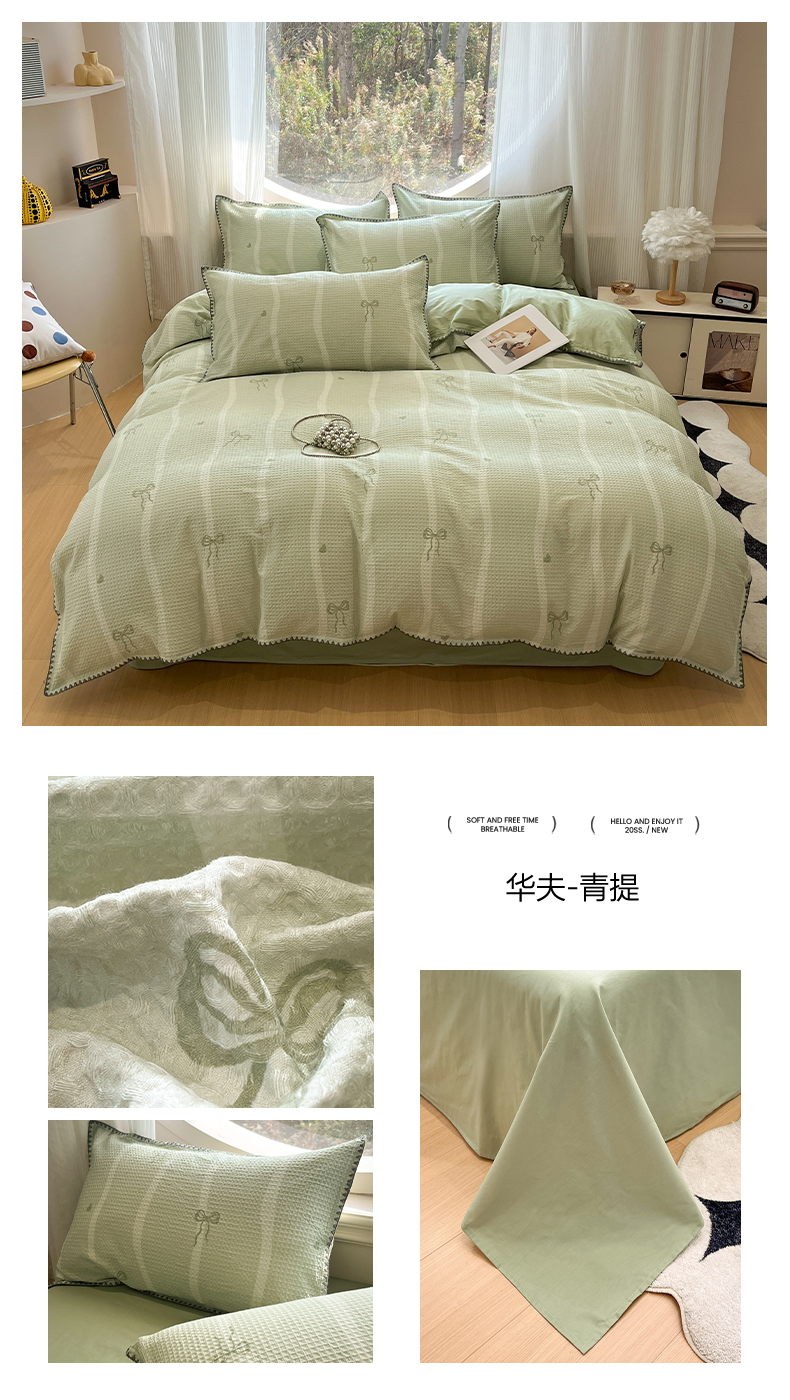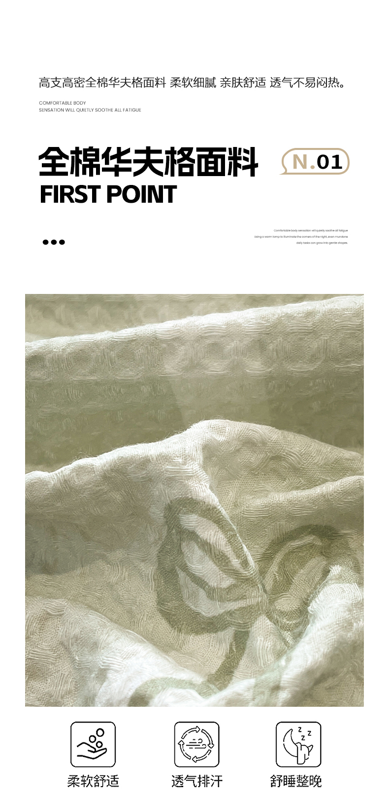 当前位置: 91家纺网 > 商品网购 > 床品套件 > 四件套 > 全棉普通四件套 > 莱茵家居 2026新款A类全棉华夫格印花贝壳边套件-华夫系列 华夫-青提