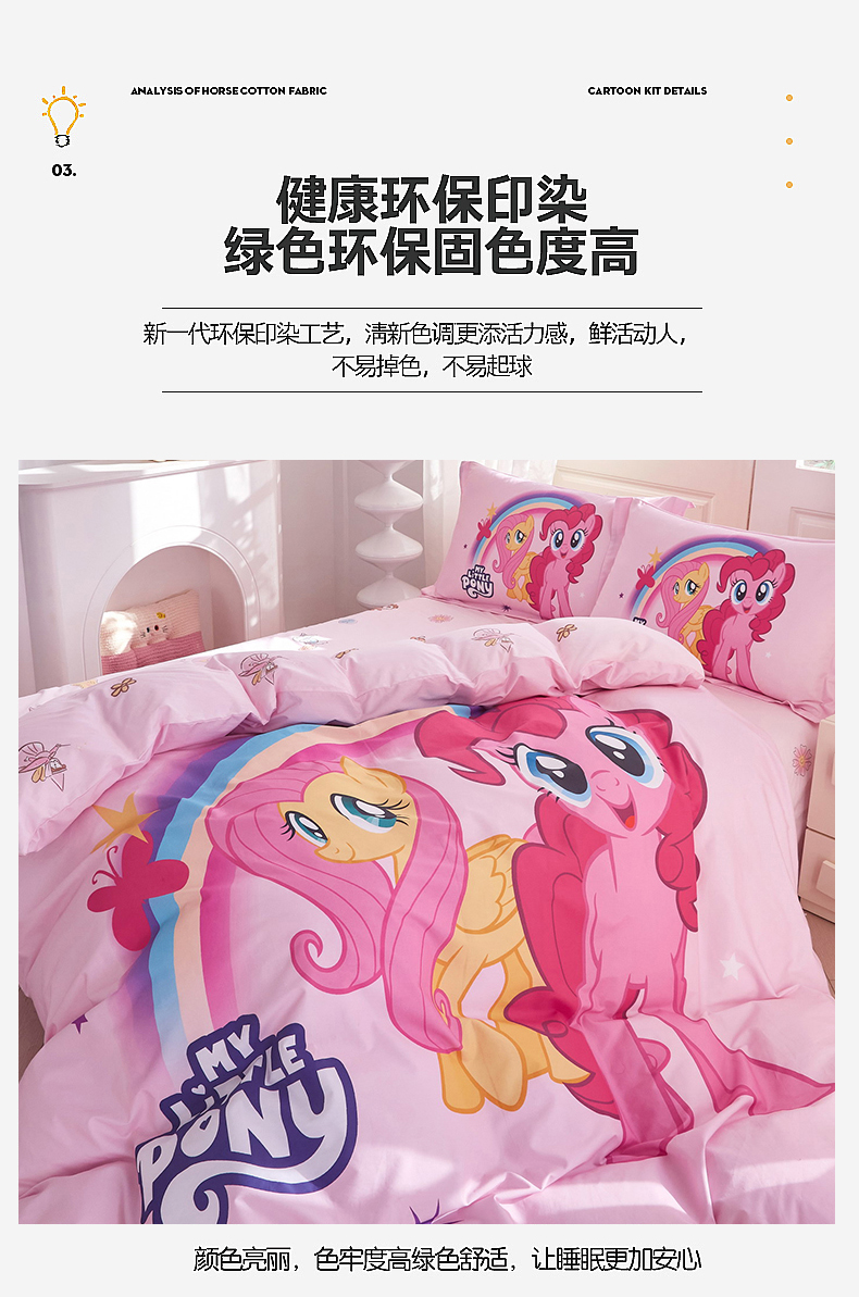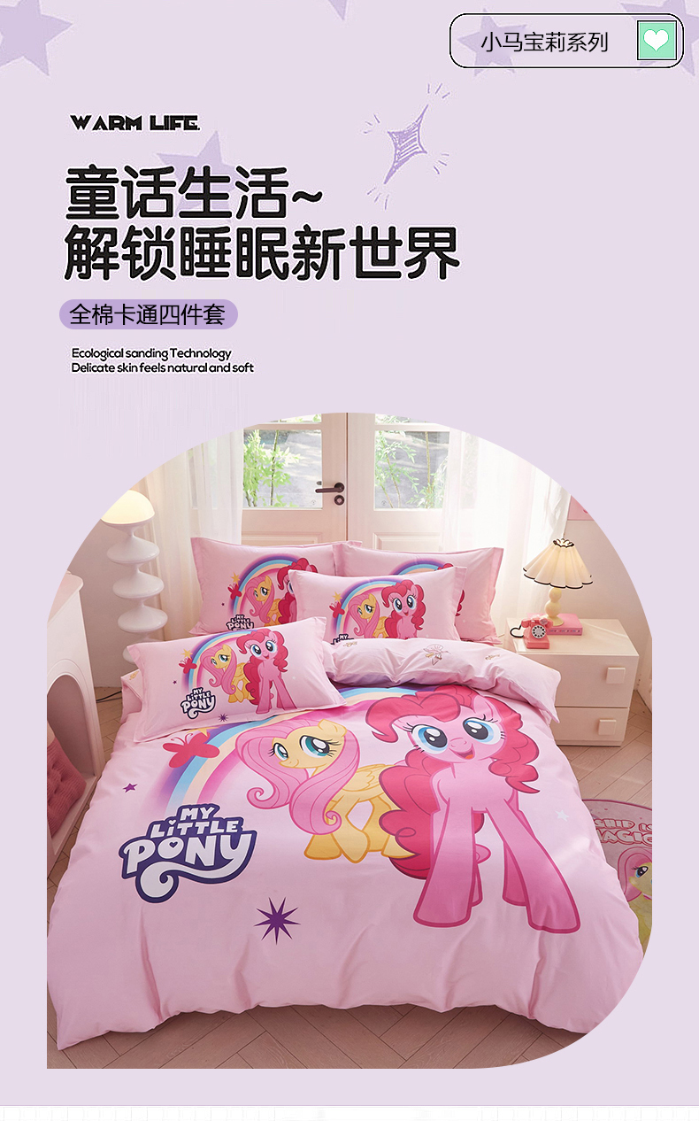 当前位置: 91家纺网 > 商品网购 > 床品套件 > 四件套 > 全棉普通四件套 > 蘭菲家纺 2026新款全棉纯棉大版卡通四件套-小马宝莉 伙伴宝莉