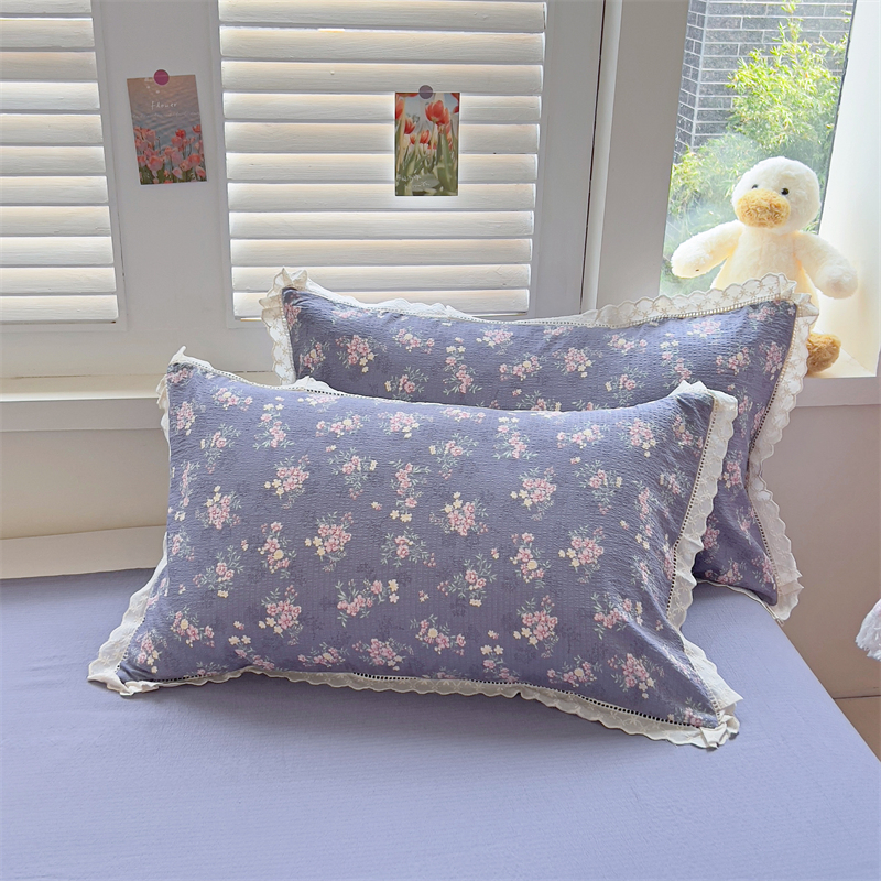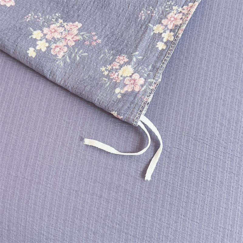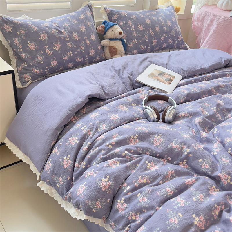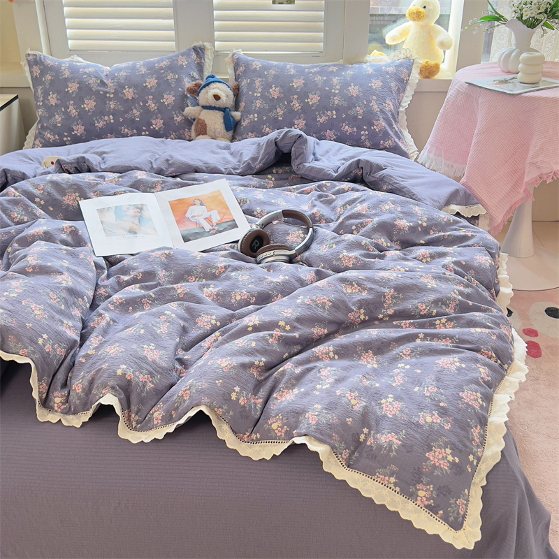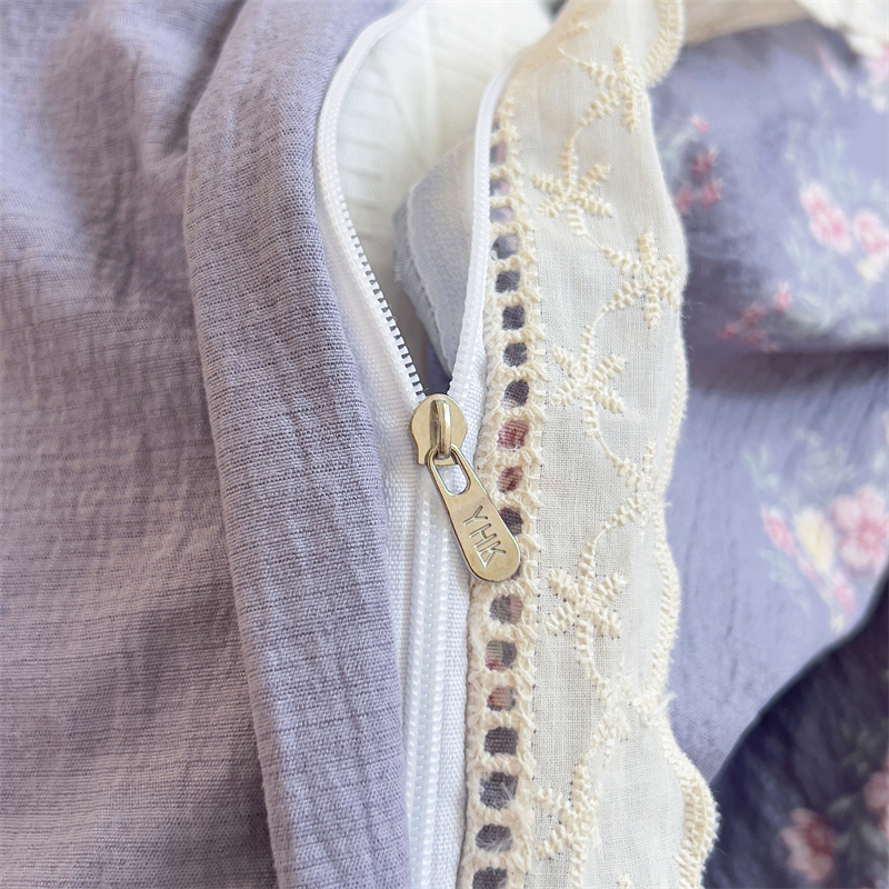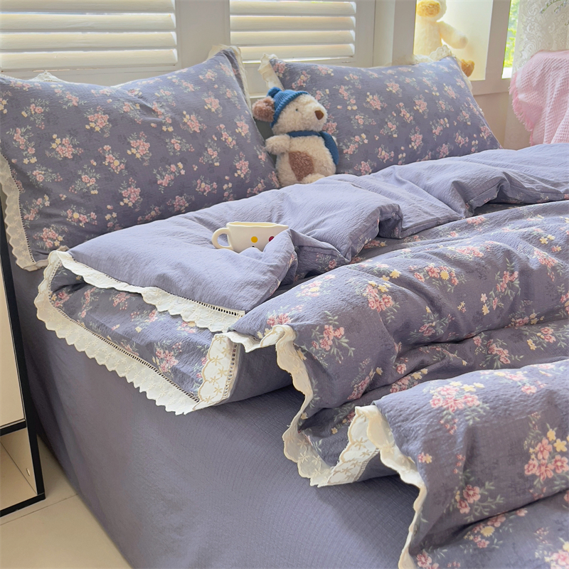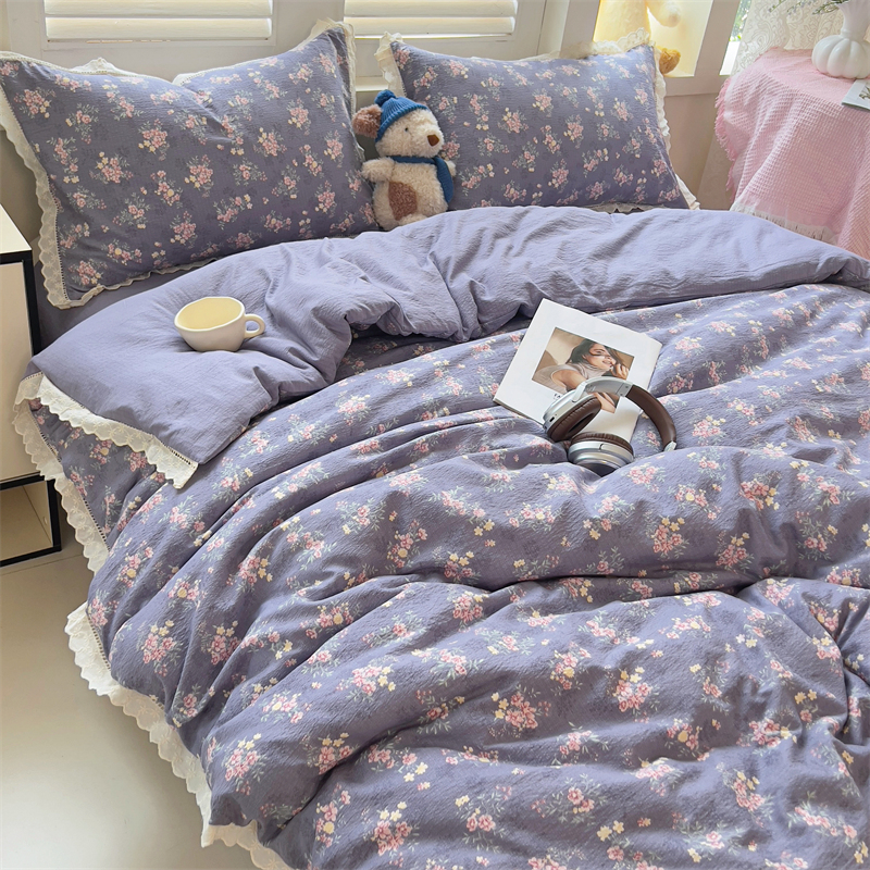 商品名称:壹号库家纺 2026新款云感木棉皱皱纱双层纱四件套-全棉花边款 豆蔻