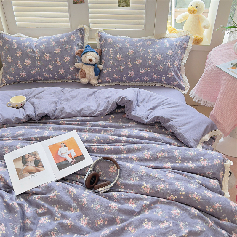 (总)壹号库 2025秋冬新款针织双层纱小清新印花四件套(专版花型),安琪拉兔,半亩花田,蝶舞,丁香紫,芳华,海盐可可,花间,花漾年华,里德油画,罗格先生,茉莉青提,奶兰芝士,奶油波点,南瓜派,桃金娘,田园诗,甜心,蔚兰,西高地,闲趣花开,樱桃甜心,崽崽,枕边童话,栗子蛋糕,萌萌狗,百福,海盐拿铁,豆蔻,甜茶,蕾丝小兔,油画少女