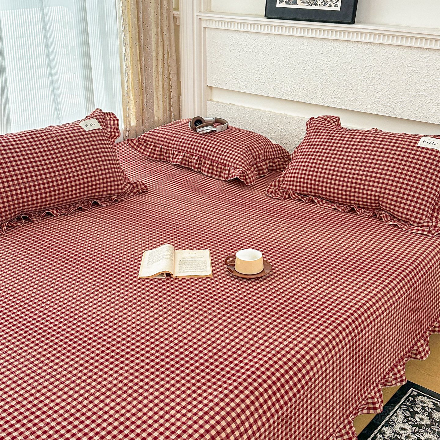 (总)暖居 2026新款全棉纯棉色织榻榻米三件套四件套单件大炕盖支持定制,黄小格,经典红咖格,经典咖小格,蓝格子,抹茶绿,紫色格子