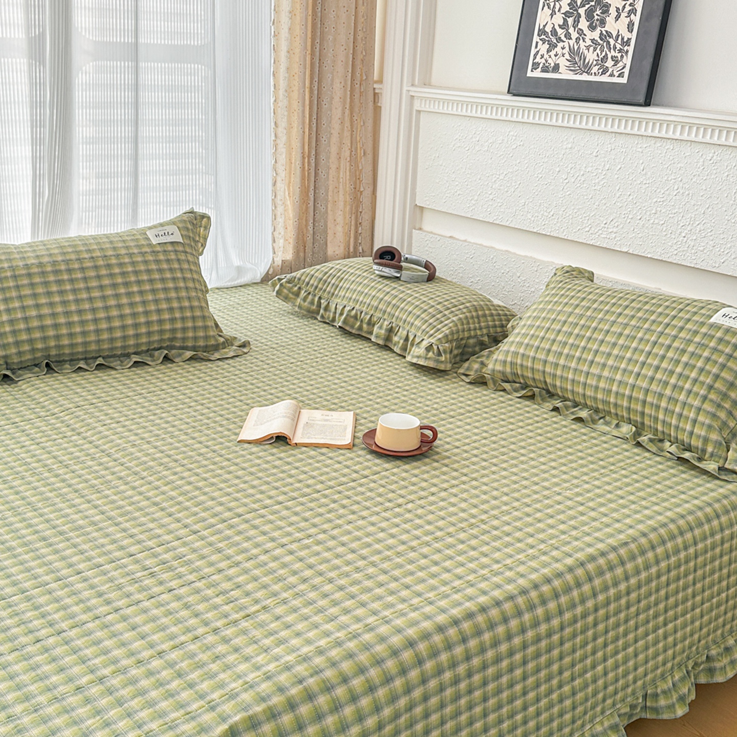 (总)暖居 2026新款色织全棉水洗棉填充棉花高温砂洗床盖四件套,格语绿,简溪,圣诞格,松野,英伦格纹,云曲